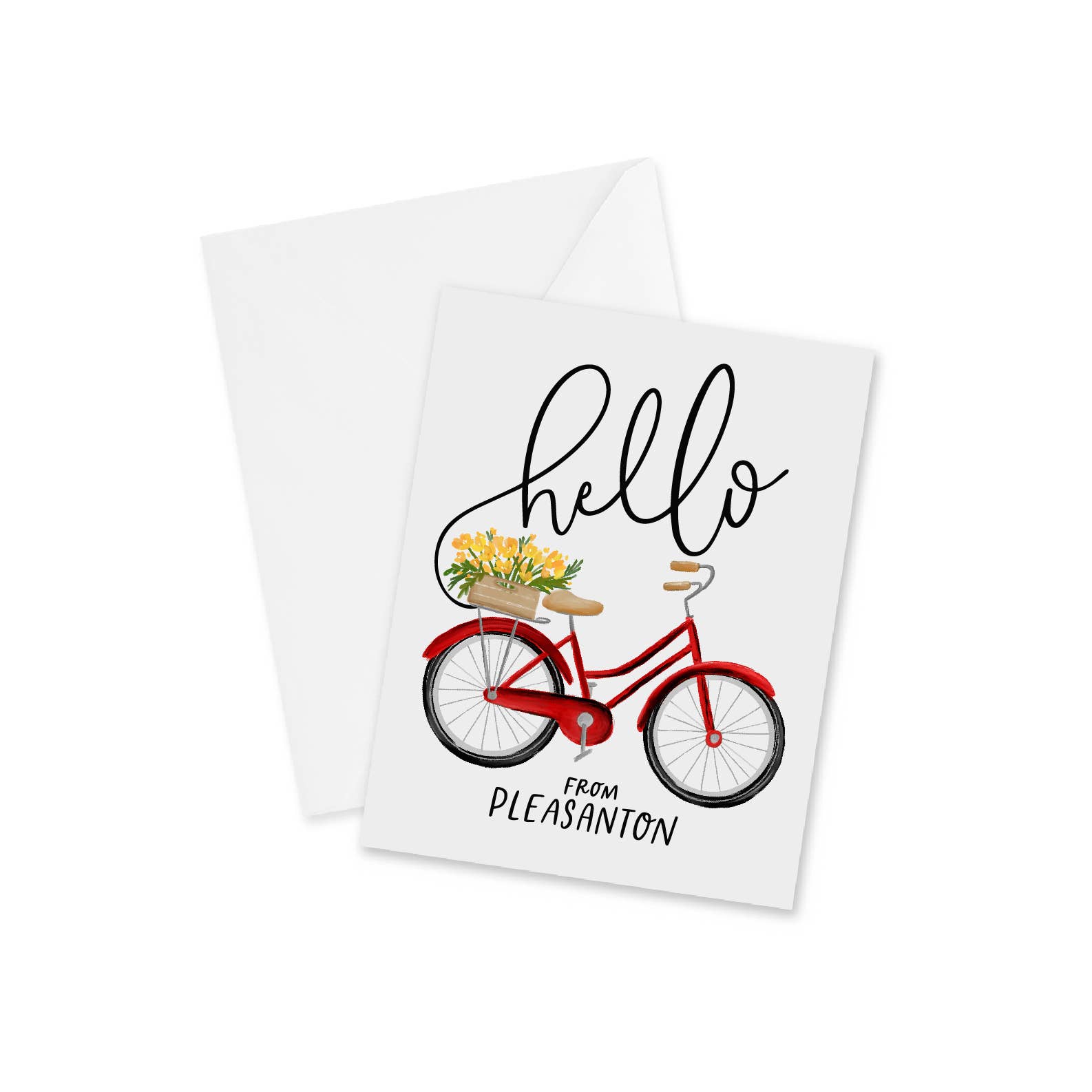 Carte-note faite à la main avec enveloppe. Typographie imprimée sur 130 livres. Papier certifié FSC. Intérieur vierge. Taille : 4,25 pouces x 5,50 pouces (plié)