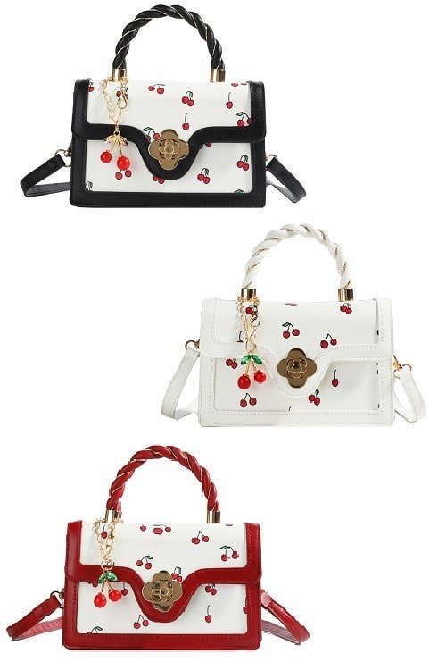 Sac panier à poignée supérieure « Berry Beautiful » orné de fraises perlées en vente B2B