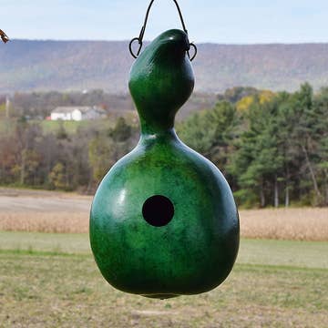 Mangeoire à oiseaux unique. S'accroche solidement à une branche ou à un crochet. Mesure 13 po x 1,75 po.
