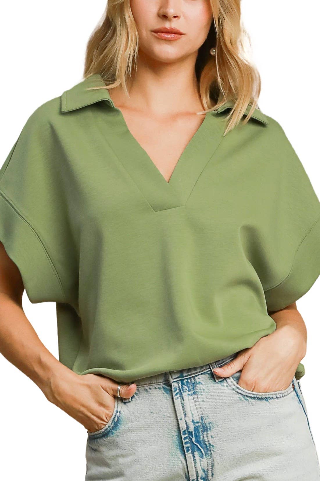 T-shirt décontracté uni à manches courtes et col en V
