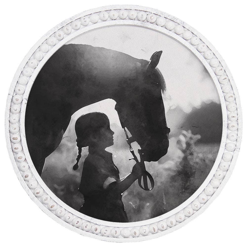 Plaque murale texturée pour couple de chevaux de ferme par Main Line Studio. Fièrement fabriquées aux États-Unis, toutes nos plaques murales commencent par des tirages lithographiques de haute qualité qui sont ensuite montés sur du bois MDF durable. Chaque pièce est finie à la main et est livrée avec une nouvelle couche de papier d'aluminium sur les côtés pour lui donner un aspect net et net. Il est prêt à être suspendu sans installation nécessaire et est livré avec des coins clairs robustes pour éviter qu'il ne soit endommagé pendant le transport.