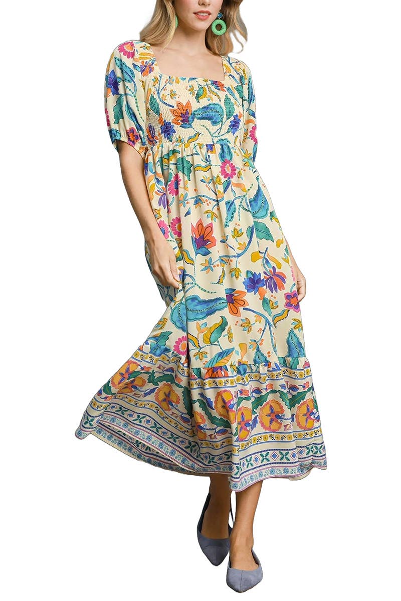Préparez-vous à exprimer l'enfant fleuri qui sommeille en vous et à suivre le rythme de l'univers avec notre « robe volantée à dos ouvert à imprimé en coton ». Cette beauté bohème associe la douceur du coton, un imprimé vibrant empreint d'une énergie psychédélique et un design amusant à dos ouvert qui ajoute une touche de fantaisie. Lorsque vous enfilez cette robe, le monde devient votre toile et les possibilités sont infinies. Les volants se balancent au gré de vos mouvements, créant une danse envoûtante d'une élégance insouciante. Que vous soyez en train de gambader lors d'un festival de musique, de profiter du soleil sur une plage ou simplement de répandre de l'amour et une ambiance positive dans votre vie de tous les jours, cette robe sera votre compagne de confiance. Associez-le à une couronne de fleurs, à des sandales à lanières et à un cœur plein de paix et d'amour, et préparez-vous à rayonner de bonheur bohème où que vous alliez. Laissez libre cours à votre esprit, dansez avec un abandon fou et profitez de la beauté d'être un véritable hippie libre d'esprit. Paix, amour et joie infinie vous attendent dans cette robe fabuleuse ! -Taille gratuite