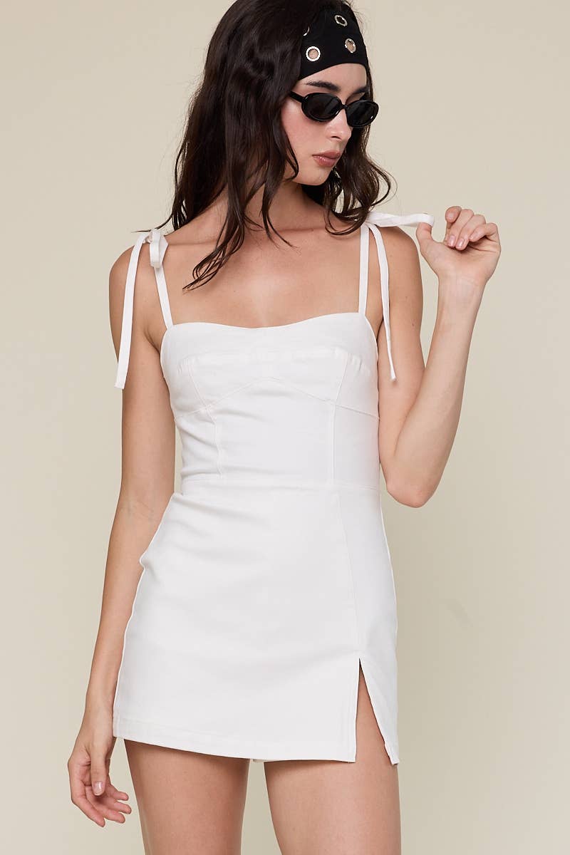 - Mini-robe moulante corset en maille et froncée - Bretelle spaghetti ajustable - Body bustier/corset - Détails froncés sur les côtés - Fermeture zippée au dos - Bonne élasticité - Mannequin taille 5 pi 9 po (porte la taille S)