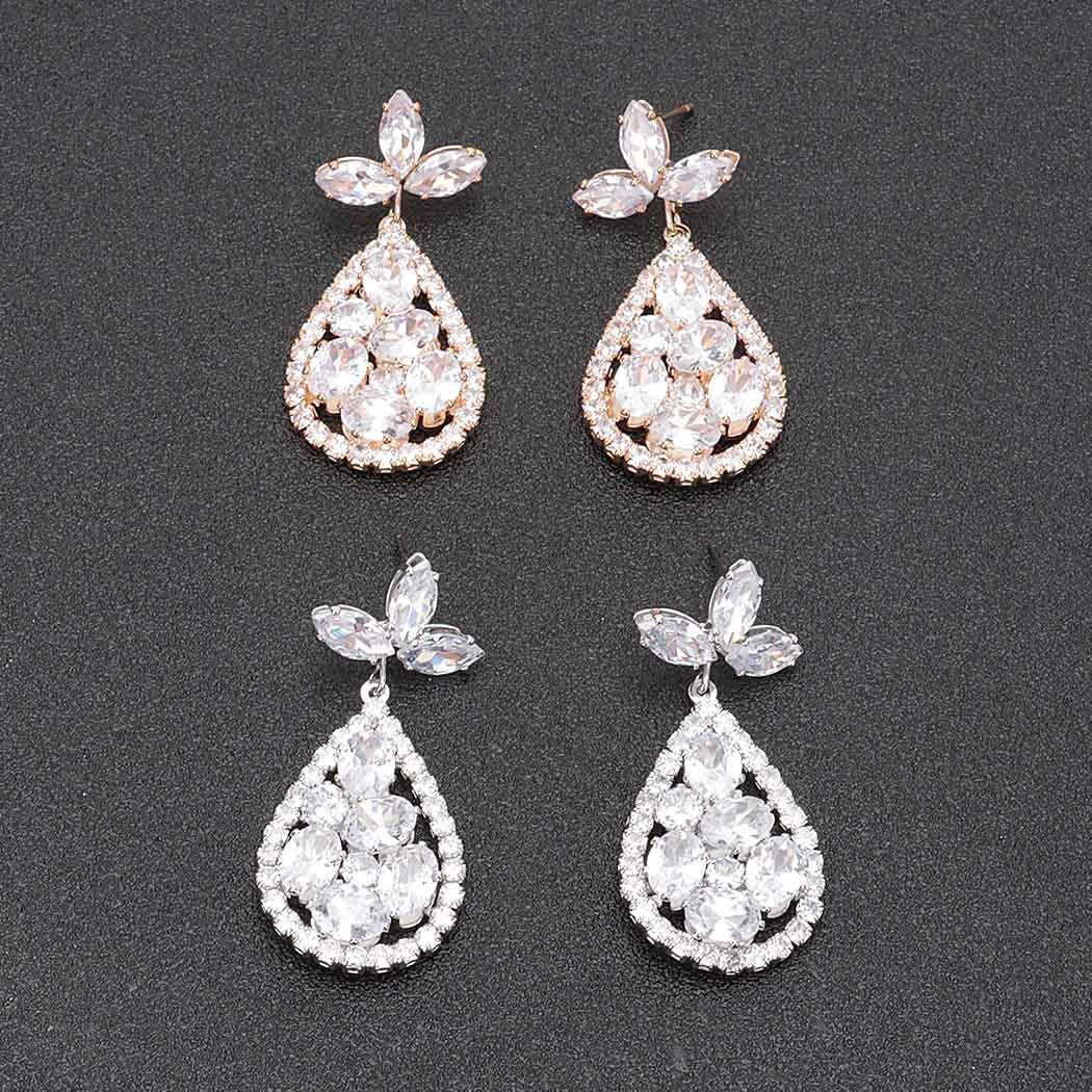 Nos boucles d'oreilles Scarlett sont fabriquées à la main avec des pierres CZ. Expédition sous 2 à 3 semaines.