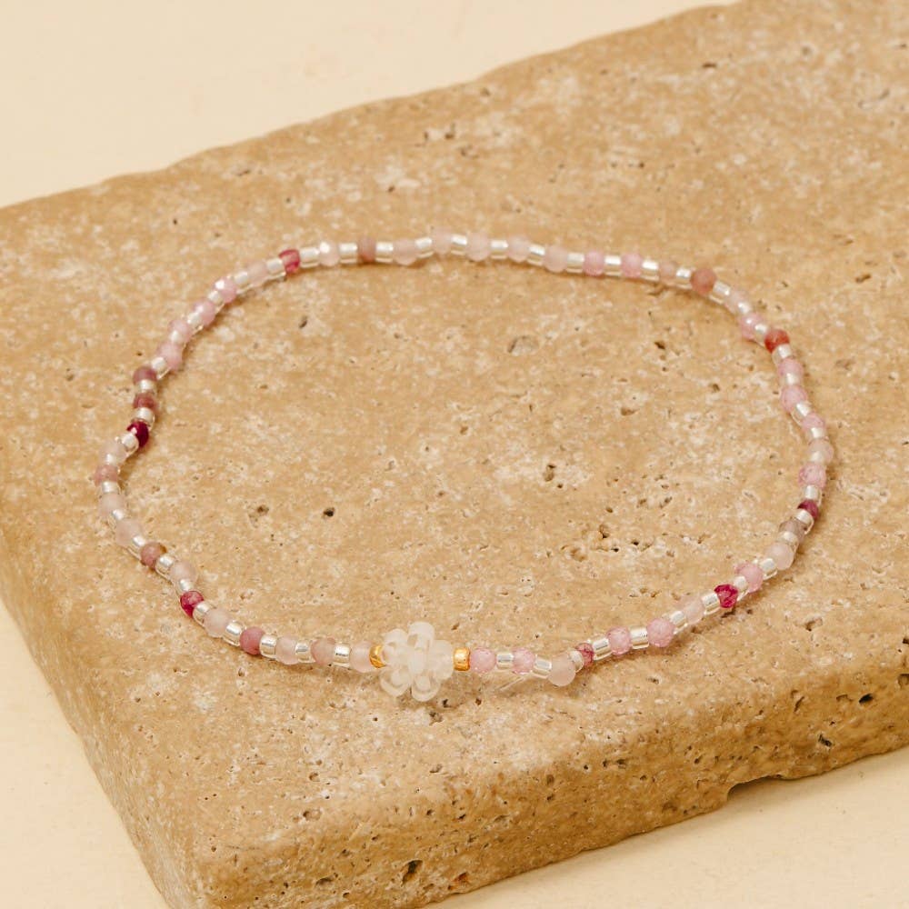 Bracelet Népal avec perles de rocailles Preciosa roses et blanches. Fait de perles de rocaille de verre, fil de coton et beaucoup d'amour. Cela mesure 7 pouces de circonférence. Finition mate et brillante. Fabriqué au Népal par l'équipe de Ramila.