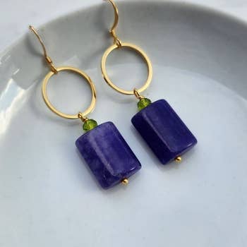 Boucle d'oreille barre de pierre en laiton. Conçu en partenariat et fabriqué à la main par un duo mari/épouse et leur équipe en Thaïlande. Boucles d'oreilles en laiton, argent et argent sterling et pierre semi-précieuse naturelle.