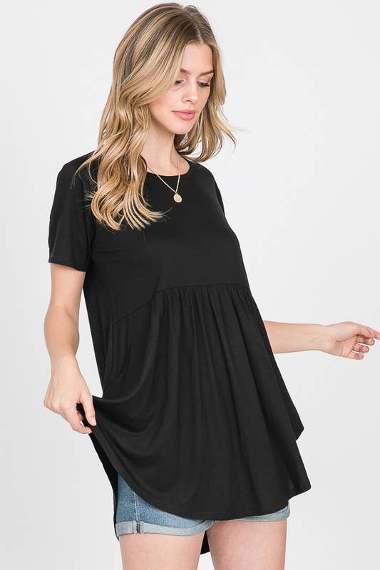 Haut brossé sec à manches courtes et fronces à la taille