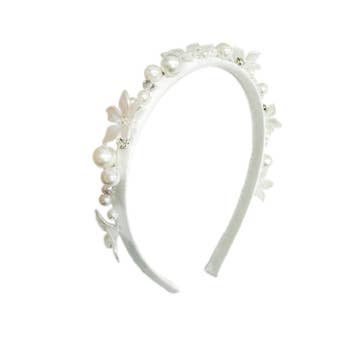 Un serre-tête en satin blanc, plein et luxuriant, avec des touches de rouge, d'argent et d'or. L'accessoire parfait pour la saison festive. Pour les 3 ans et plus.