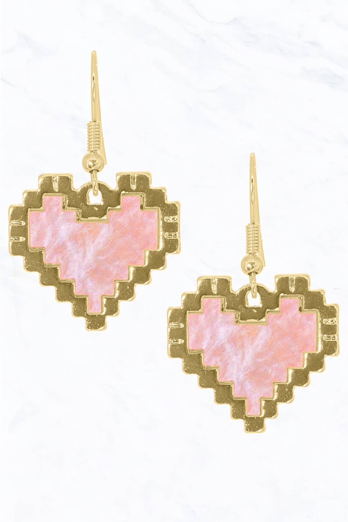 Boucles d’oreilles cœur pixel - Boucles colorées hypoallergéniques en vente B2B
