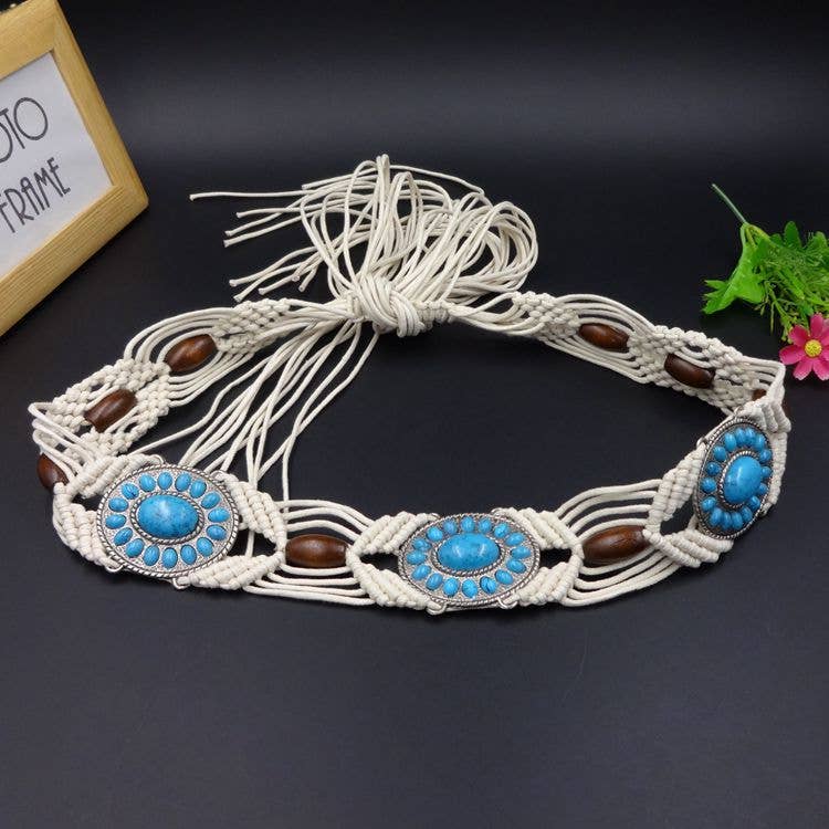 Ceinture de fermeture à boucle et à boucle en cuir véritable cauri étroit culturel africain en vente B2B