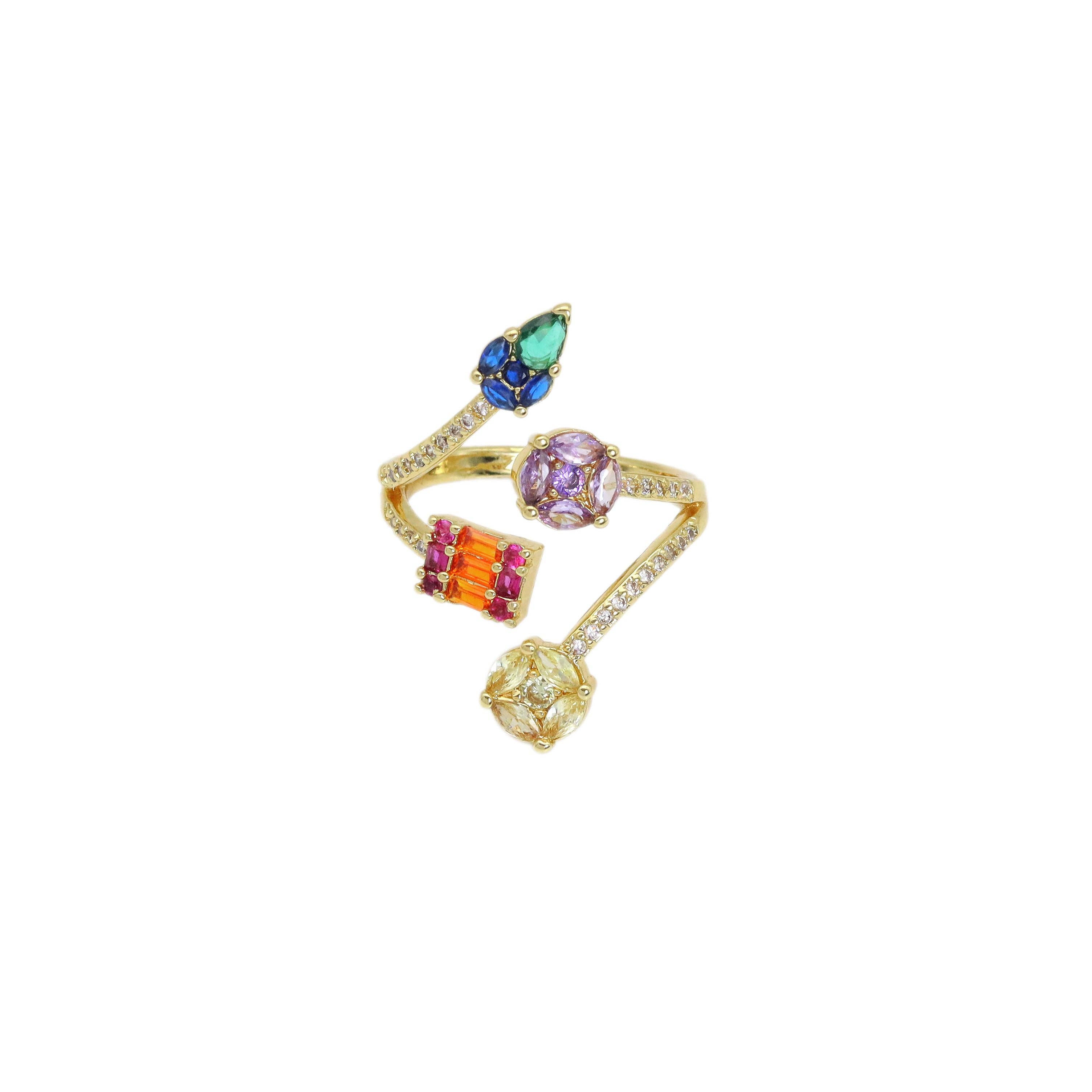 Bague plaquée or 18K avec design bulles colorées en zircon - FGS