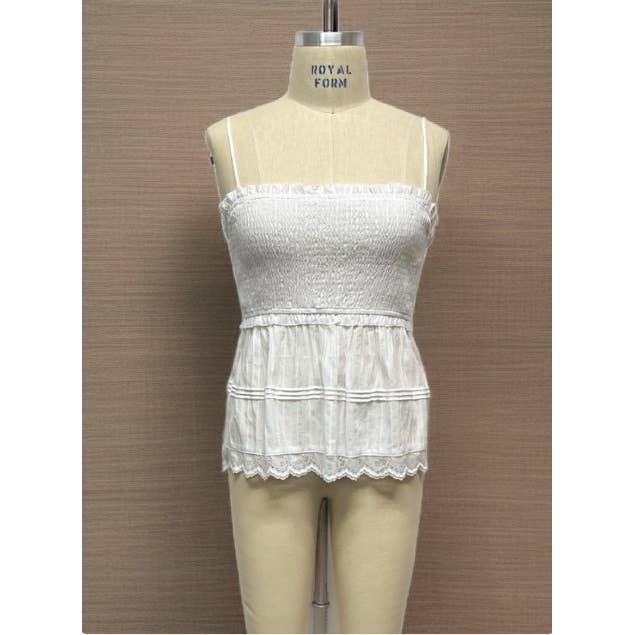 Top à col en V pour femme en coton naturel. Ce magnifique haut est orné de franges sur l'ourlet ainsi que le long de l'encolure. Les bretelles du haut sont dotées d'un élastique crocheté et d'un panneau élastique au dos pour plus de confort. Ce haut élégant est fabriqué à partir du meilleur coton Pima. Doux et confortable avec une coupe respirante et décontractée.