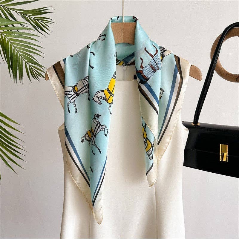 Foulard vintage coloré à imprimé animal en soie synthétique en vente B2B
