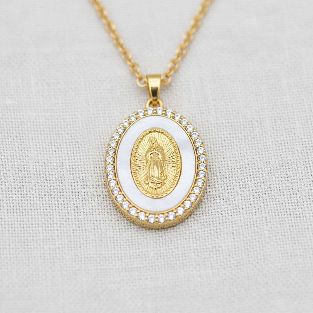 Bijou de la Vierge Marie : un cadeau catholique intemporel Ce collier ovale Vierge Marie, plaqué en or 18 carats, est un bijou religieux qui présente une Médaille Miraculeuse, un symbole catholique de foi et de protection. Le pendentif ovale est élégamment conçu avec des détails délicats et met en valeur une belle image de Notre-Dame de Guadalupe. Il est suspendu à une chaîne délicate plaquée or, qui complète parfaitement le design du pendentif. Ce collier est un cadeau idéal pour toute personne attachée à sa foi catholique et cherchant la protection de la Vierge Marie. POURQUOI NOUS CHOISIR ? Chacune de nos magnifiques pièces est créée avec amour et soin à partir de matériaux de haute qualité. Nous aimons créer de beaux bijoux et espérons que nos créations vous apporteront autant de joie qu'à nous lors de leur fabrication.