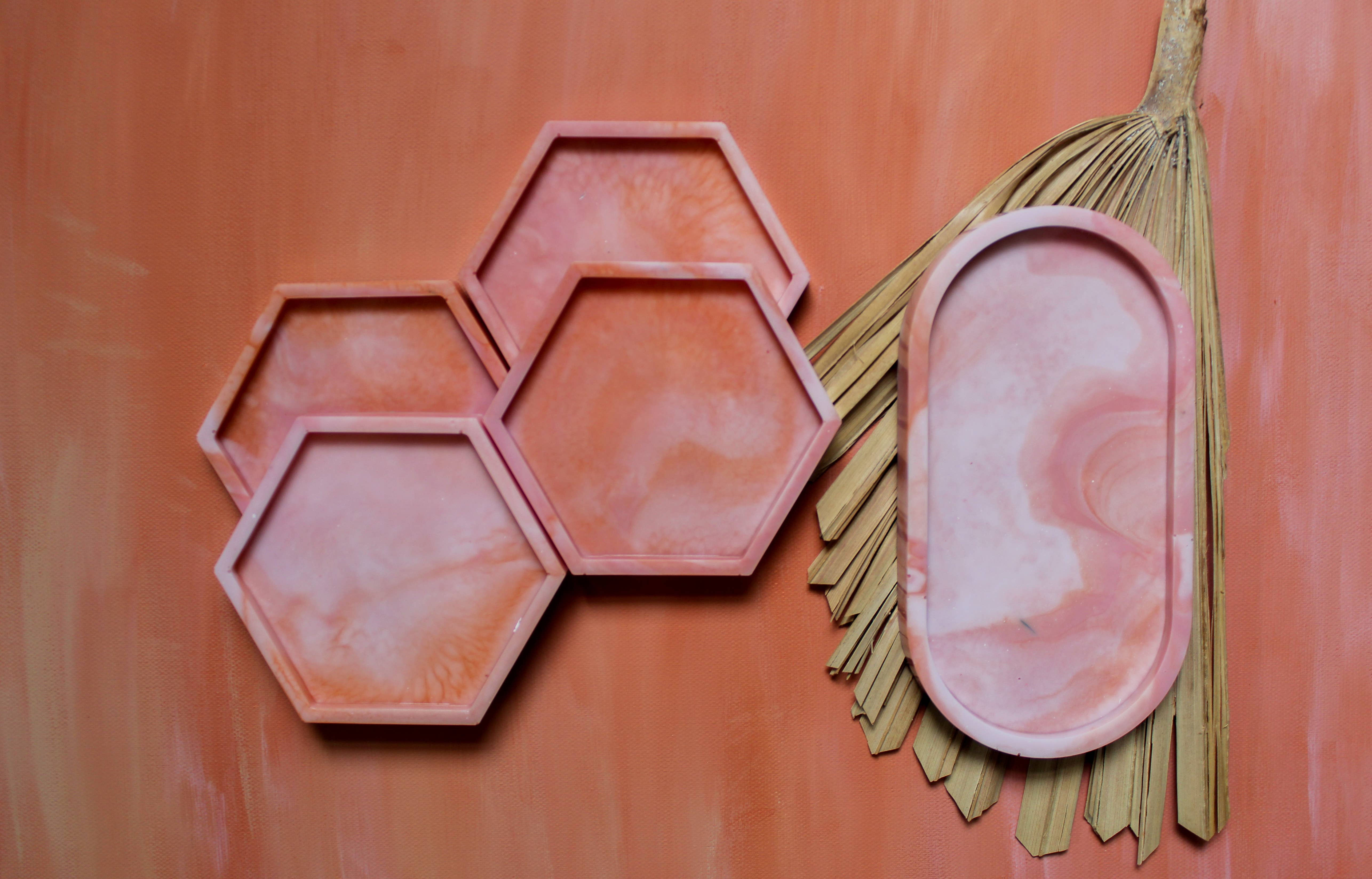 Set de 4 dessous de verre hexagonaux en marbre et bois - blanc en vente B2B