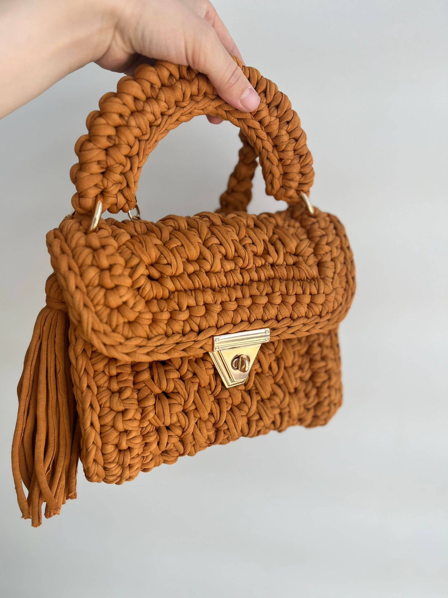 * : Le sac fait main à 100% convient à de nombreux styles de mode et peut contenir de nombreux articles, téléphones, maquillage, lunettes de soleil, sacs à main. (Taille : 9 x 8 x 4 pouces - 23 (L) x 20 (H) x 10 (L) cm) Il complétera votre élégance avec des vêtements de tous les jours et de soirée. * : Lorsque vous transportez notre sac au crochet à la plage, à un mariage, à une fête ou dans la rue, son design sophistiqué et son superbe look tendance attireront l'attention de nombreuses personnes. Il met en valeur votre goût à la mode et élégant. * : Sac crocheté fait main en fil peigné pour t-shirt de qualité supérieure avec du coton.
