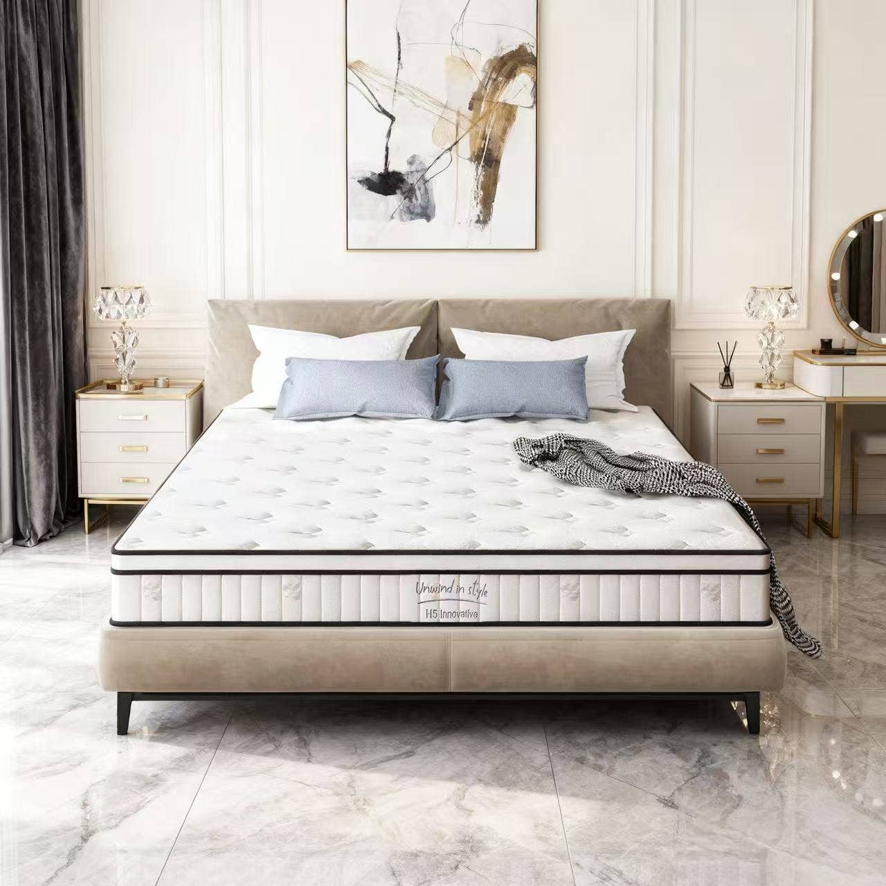 Le matelas en mousse à mémoire de forme infusé de gel de cuivre de 12 pouces offre une expérience de sommeil exceptionnelle avec son niveau de confort moelleux. Ce design contemporain s'adapte parfaitement à n'importe quel décor de chambre, tandis que les options de couleurs élégantes en noir et blanc renforcent son attrait moderne. Conçu pour être compatible avec des bases ajustables, il offre une polyvalence pour un confort personnalisé. L'infusion unique de cuivre aide à réguler la température et favorise un environnement de sommeil frais, garantissant un réveil revigoré. Découvrez le parfait mélange de soutien et de luxe avec ce matelas en mousse à mémoire de forme qui épouse la forme naturelle de votre corps, soulageant les points de pression pour une nuit de sommeil réparatrice. Transformez votre chambre en un sanctuaire de détente avec ce choix de matelas innovant. 11,5 pouces h x 80 pouces l x 39 pouces p. Compatible avec des bases ajustables pour un confort personnalisé Conçu avec un niveau de confort moelleux pour un confort ultime Fabriqué pour offrir un soutien uniforme pour une nuit de sommeil réparatrice Idéal pour ceux qui recherchent à la fois confort et design élégant Présente un style contemporain qui s'adapte à un décor moderne Le schéma de couleurs noir et blanc ajoute une touche élégante