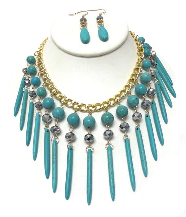 Ensemble de colliers en turquoise Ensemble collier et boucles d'oreilles 10" (pouces)