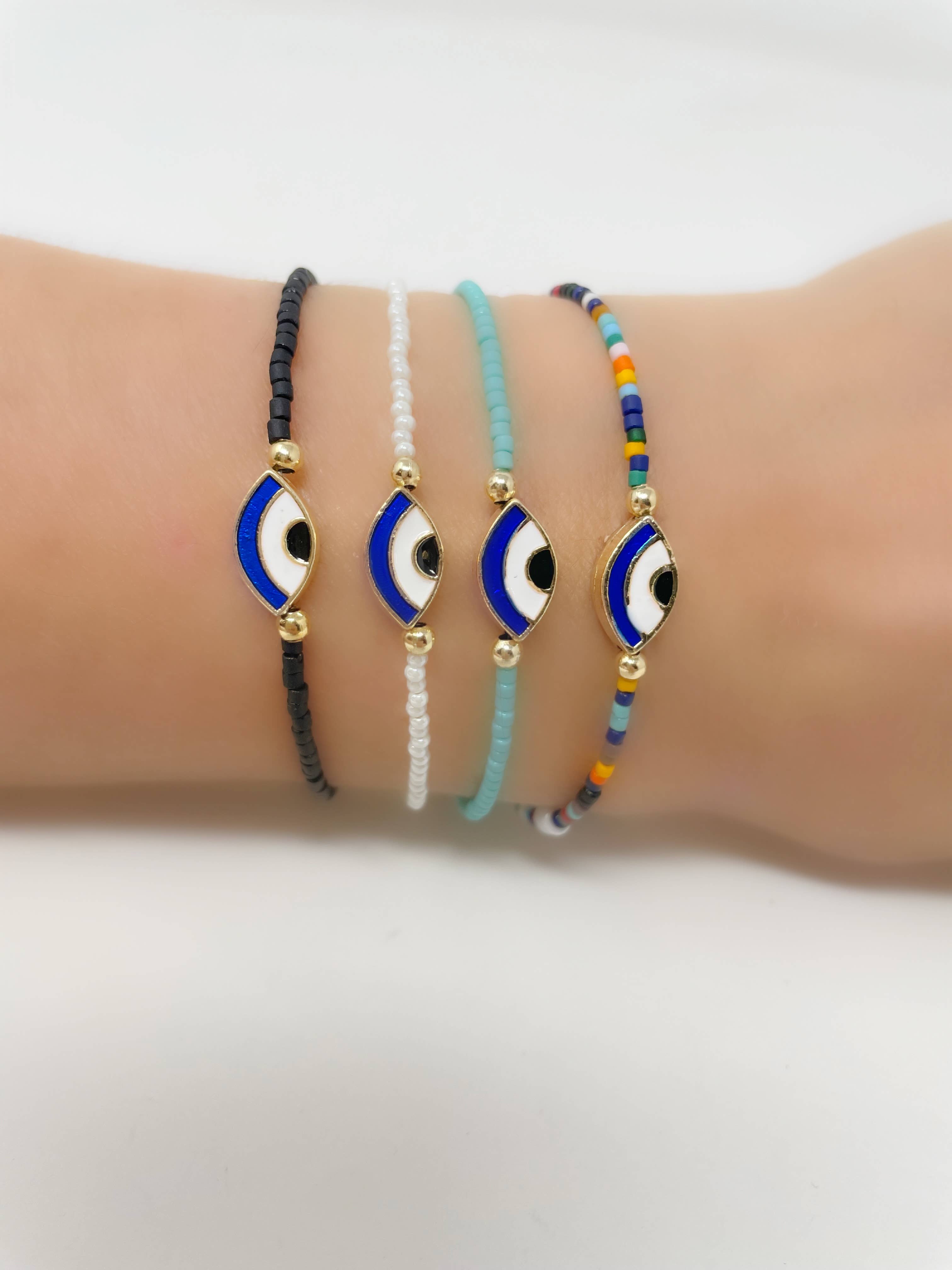 Bracelet d'amitié en macramé fin en perles Evil Eye