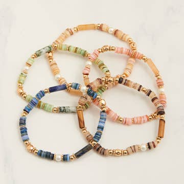 (1) une Bague Serpent : Canyon → satin, ivoire, crème, pêche, orange, orange vif, rouge, brique, aubergine, violet, violet acide, lavande poussiéreuse, bleu gris glacé, blanc (1) une Mini Bague Rayée : brique / argent MOY - taille de bague 6/7 GRD - taille de bague 8/9 Matériaux : élastique premium, perles de rocaille japonaises Miyuki, fermoir en or rempli 14K. Entretien : OK pour se mouiller :) Évitez une exposition excessive à l'humidité, aux cosmétiques + produits chimiques, car ils peuvent ternir / affaiblir les bijoux sur de longues périodes. Les perles peuvent légèrement varier. ~ PLUS D'INFO : *Un ensemble de bagues empilables unique, inspiré par les parois stratifiées des parcs nationaux d'Antelope et du Grand Canyon. *L'élastique premium est durable et confortable, pour tous types de doigts, y compris les doigts qui gonflent par temps chaud, les grosses articulations dues à l'arthrite et ceux qui sont sensibles au toucher. *Léger, inaltérable -- pour un port quotidien. *Fermoir en or rempli 14K -- hypoallergénique, ne ternira pas et ne rendra pas la peau verte. *Fait main avec soin, une perle à la fois, à Cleveland Heights, Ohio, USA :) *L'or rempli et les véritables perles de verre japonaises se combinent pour une déclaration portable délicate mais durable. Parfait pour les boutiques recherchant des bijoux empilables artisanaux et collectables pour les femmes de tous âges et horizons. Nos designs sont des pièces minimalistes avec des vibrations ludiques et avec un maximum de couleur. Conçu pour les détaillants qui veulent des bijoux avec une histoire, un savoir-faire et un attrait de style en rayon. *Emballage : Les bagues sont livrées avec une petite étiquette de taille de marque qui peut être facilement retirée. *Conseils de merchandising au détail : Portez des bracelets en piles de 2-3 pour mettre en valeur le potentiel de superposition et exposez-les dans un petit plat près de la caisse pour encourager les achats d'appoint/rapides. ~ NOTRE HISTOIRE : On the Lookout Jewelry est une entreprise artisanale depuis plus de 10 ans, ancrée dans la traduction de l'inspiration quotidienne en un talisman portable, unique, ludique et durable. Basée à Cleveland Heights, Ohio, chaque pièce est conçue avec soin, fabriquée à la main par notre petite équipe de 3 personnes, et sélectionnée pour les détaillants indépendants qui apprécient les bijoux de haute qualité, axés sur l'histoire et avec de la personnalité :)