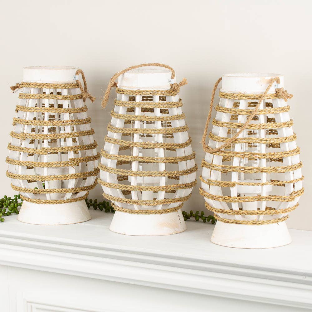 Un style rustique et raffiné se mêle dans cet ensemble de lanternes Jack O' Lantern en métal blanc, avec une finition vieillie et des visages sculptés joyeux. Chaque lanterne est dotée d'une anse solide et d'un haut ouvert, idéal pour ajouter des bougies LED ou des guirlandes lumineuses (non incluses). L'extérieur blanc patiné apporte un charme campagne aux décorations d'automne et d'Halloween, aux arrangements sur le porche ou aux coins cosy intérieurs. L'ensemble comprend une grande lanterne et une petite.