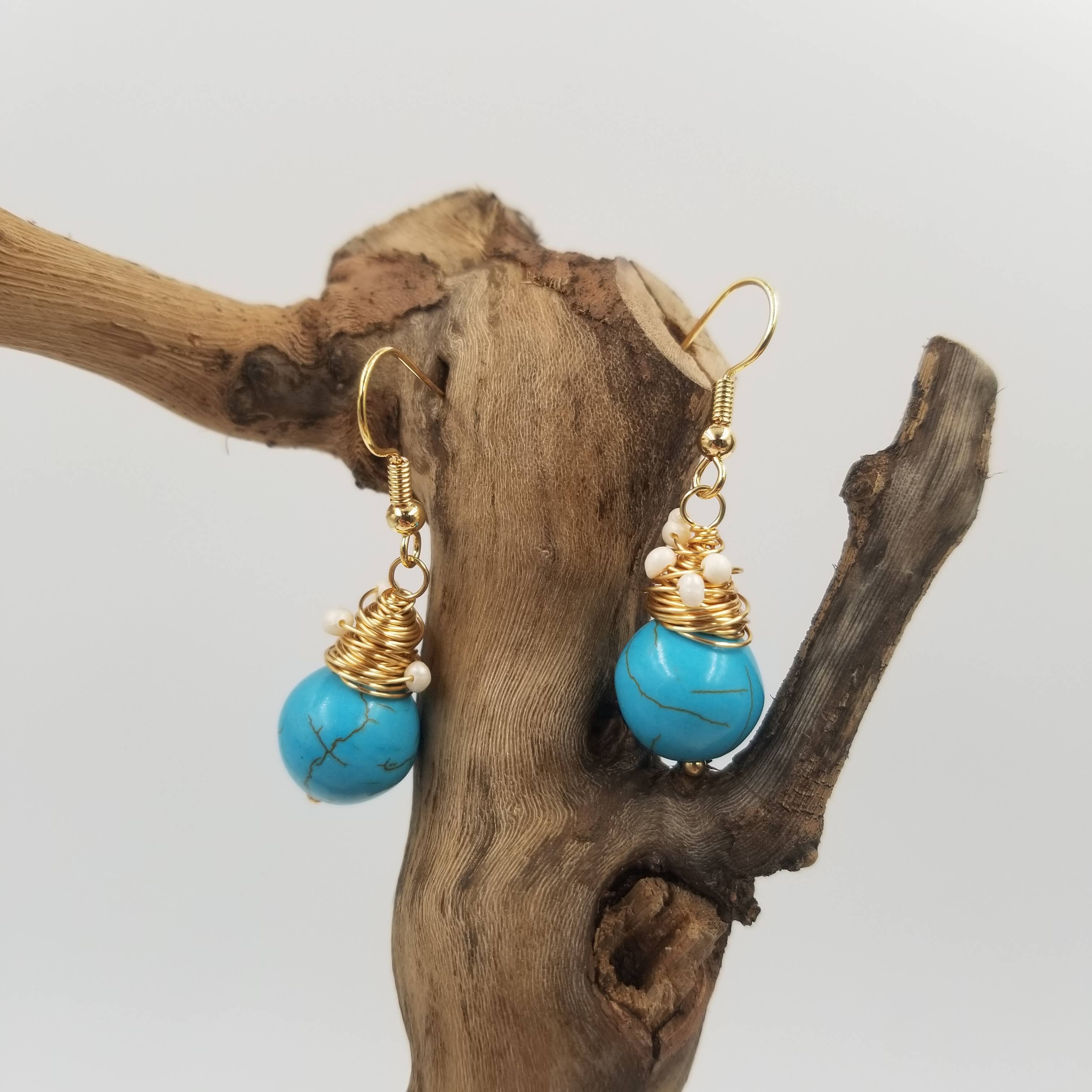 Pays de fabrication : États-Unis Matériau : Argent sterling plaqué, Laiton, Or plaqué et Verre Occasion : Fête des Mères et Noël Style : Bohème Thème : Nature Type de pierre : Turquoise Poids : 22,68 g (0,8 oz) UGS : 921-TQ