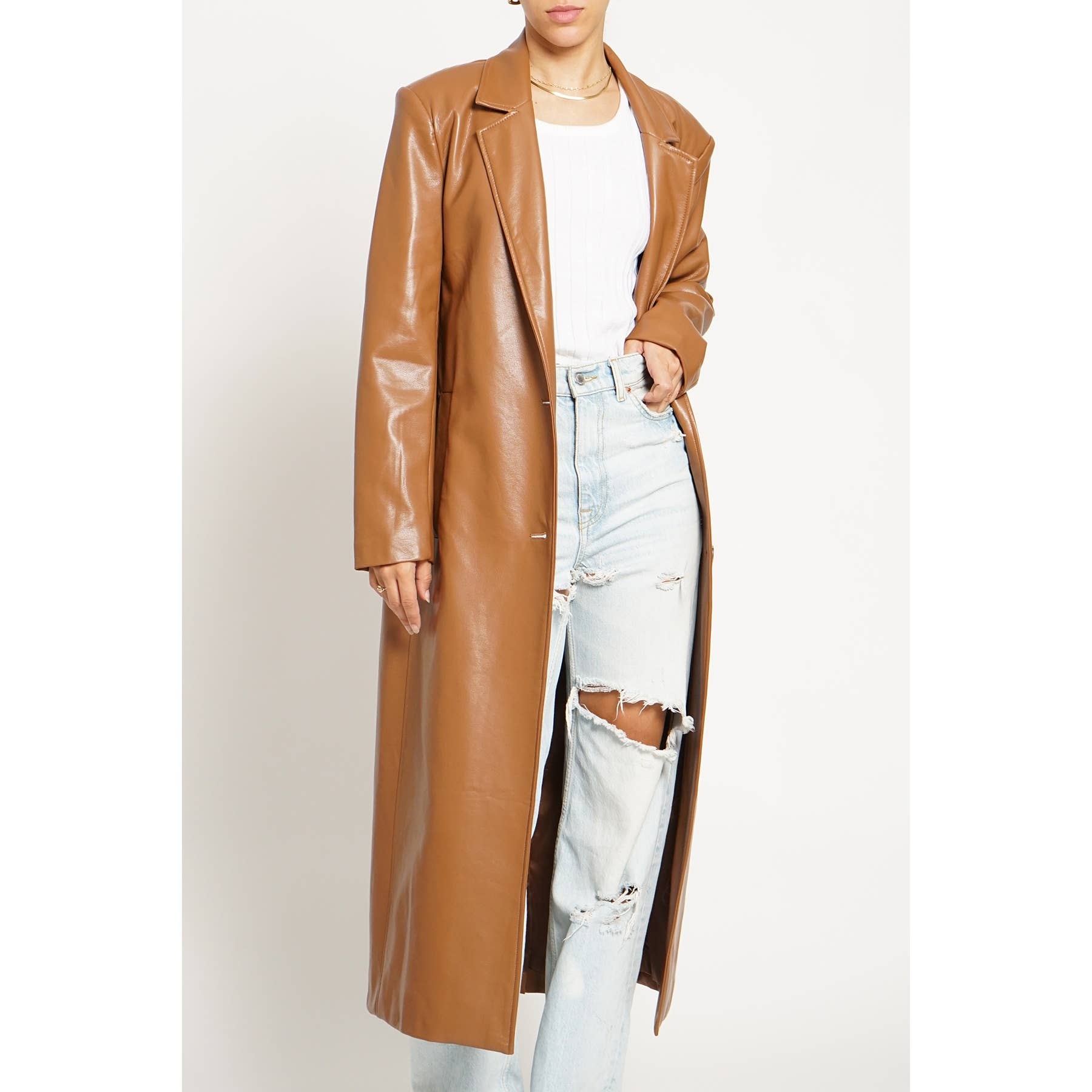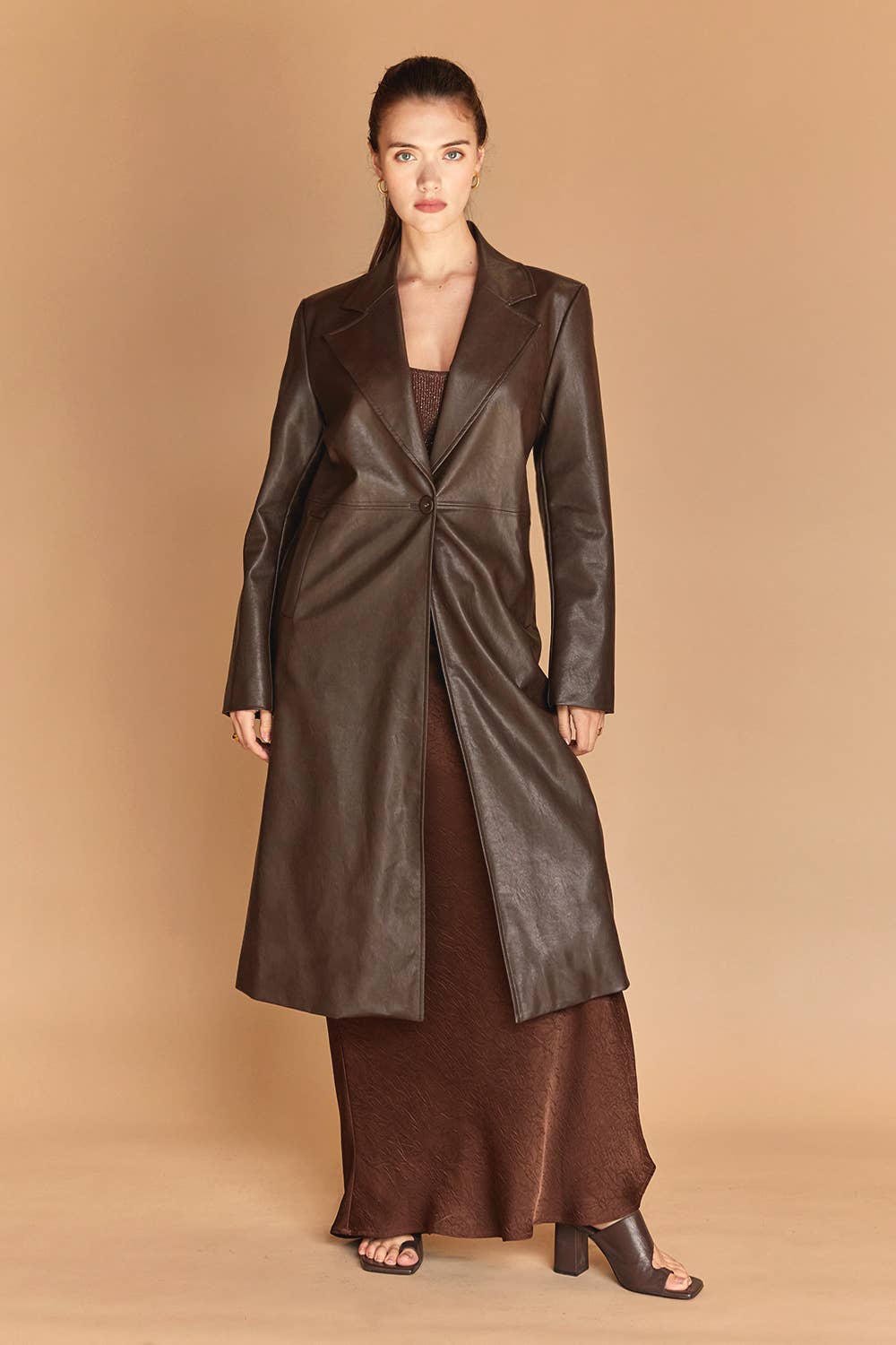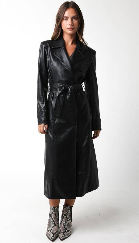 Manteau long à lacets en similicuir motif crocodile SY391 en vente B2B