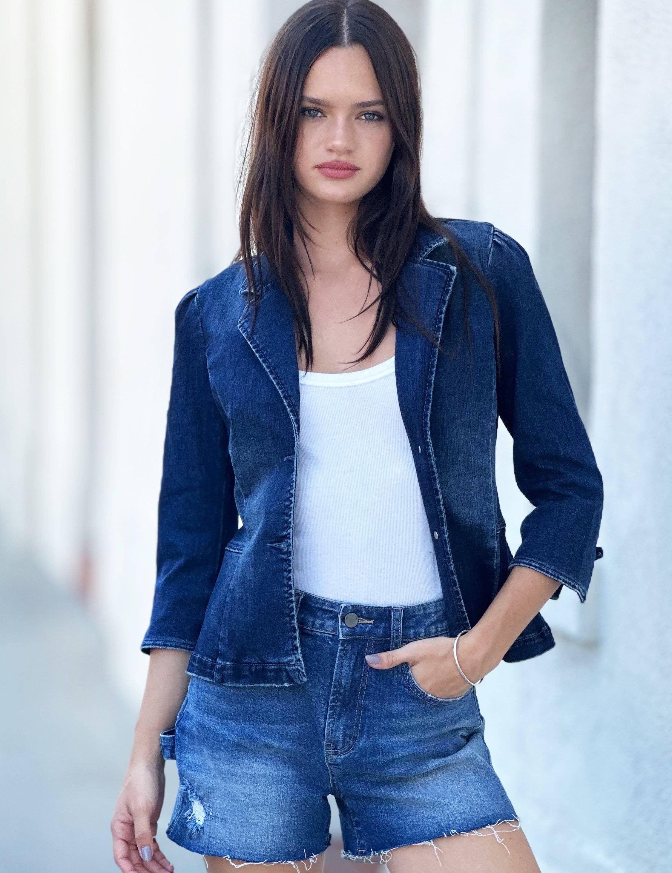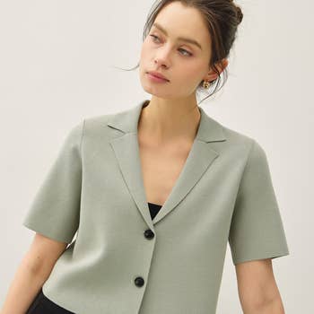 Blazer décontracté polyvalent avec col bicolore en vente B2B