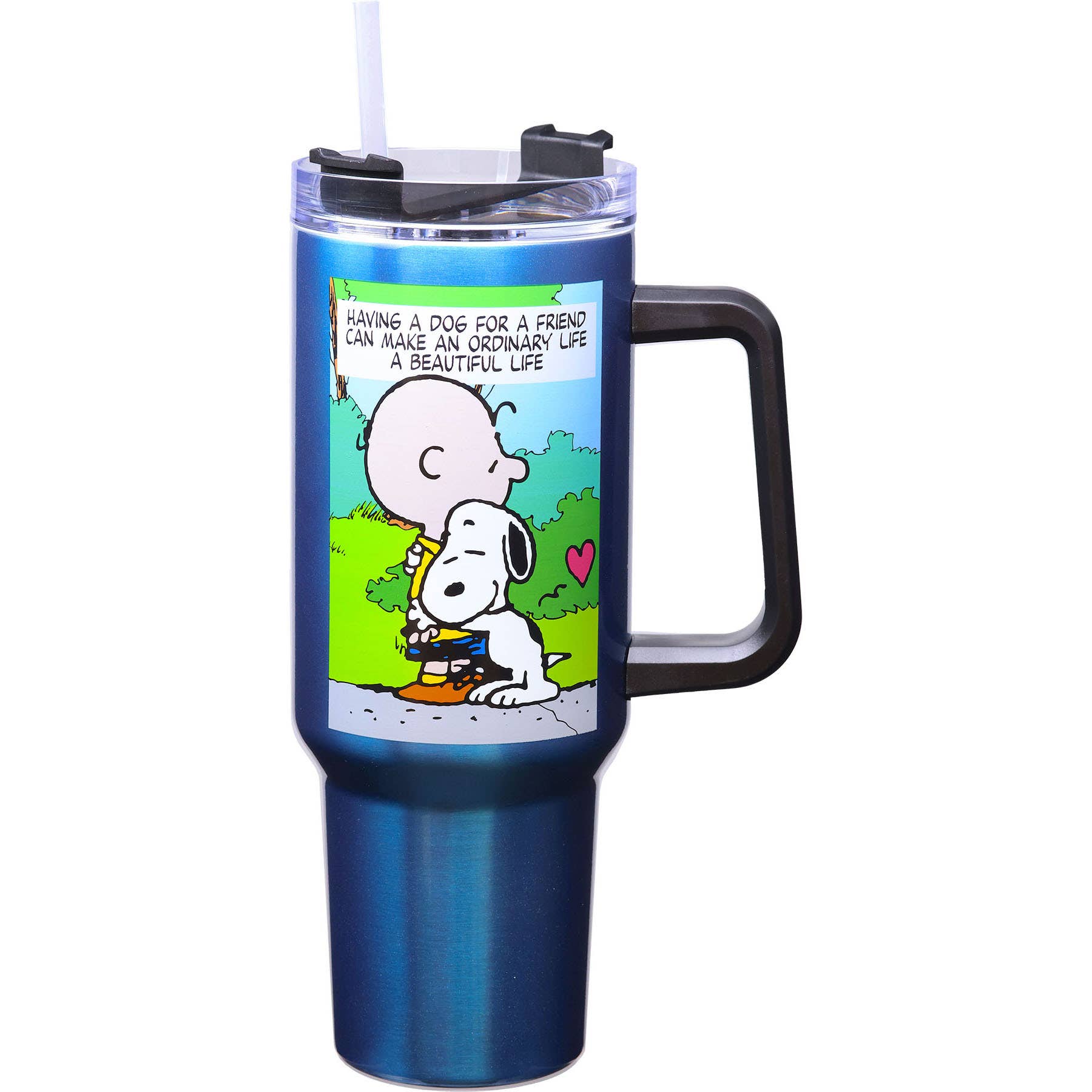 Cette tasse de voyage est élégante, peut contenir 14 oz de liquide et est dotée d'une poignée facile à saisir. Il est robuste et durable, avec un fond conique qui peut parfaitement s'adapter à un porte-gobelet. Il a également une surface inclinée, ce qui facilite la consommation de boissons quel que soit le contenu que vous avez dedans. Il est fabriqué en acier inoxydable, ce qui le rend durable mais malheureusement dangereux pour le micro-ondes. La double paroi épaisse de la tasse garde la boisson très chaude ou froide pendant longtemps. L'impression est réalisée à partir d'encres de sublimation de qualité supérieure, donc ne pas laver facilement. Ils durent très longtemps. Le couvercle est sûr pour le lave-vaisselle et est incassable. Remarque : Ces produits n'ont pas été officiellement approuvés comme étant sûrs pour les lave-vaisselle, mais nous avons effectué des centaines de tests qui prouvent qu'ils sont sans danger pour les lave-vaisselle. La recommandation officielle est le lavage à la main.