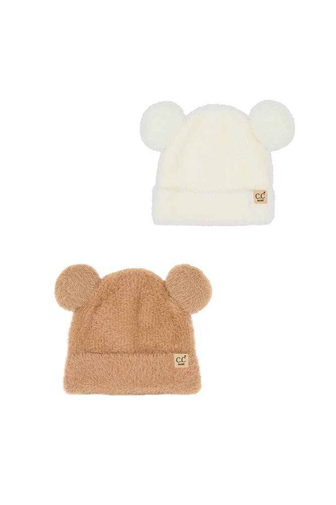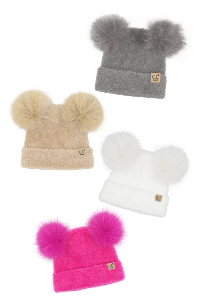 Bonnet blanc à double pompon Aran pour nouveau-né en vente B2B