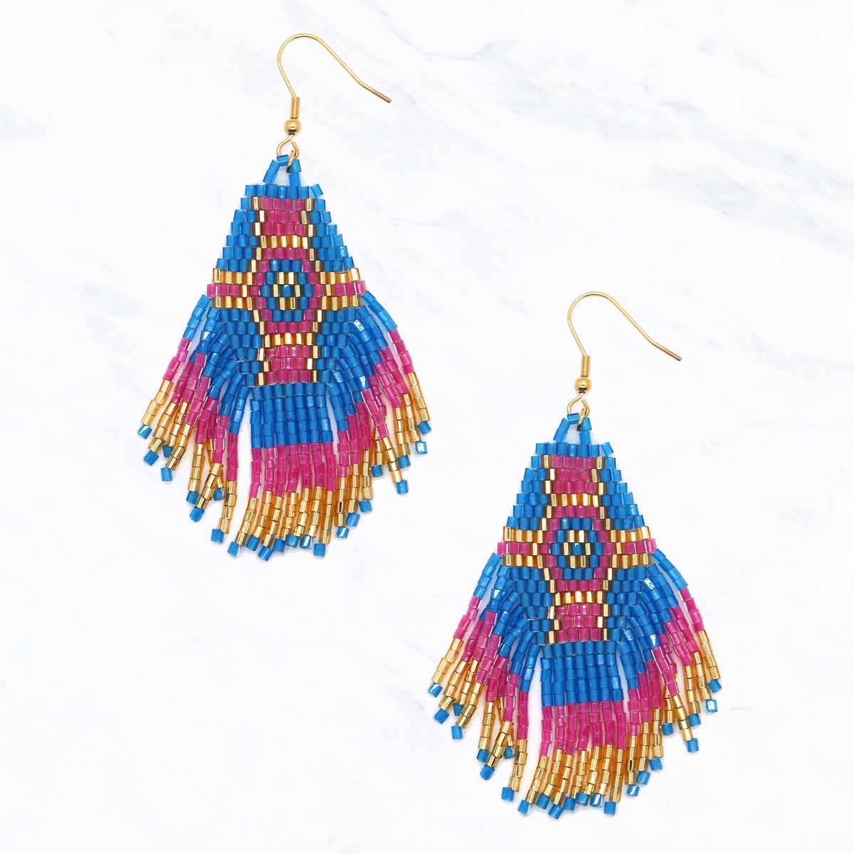 Boucles d’oreilles à franges tissées à la main avec perles (Coucher de soleil océan) en vente B2B