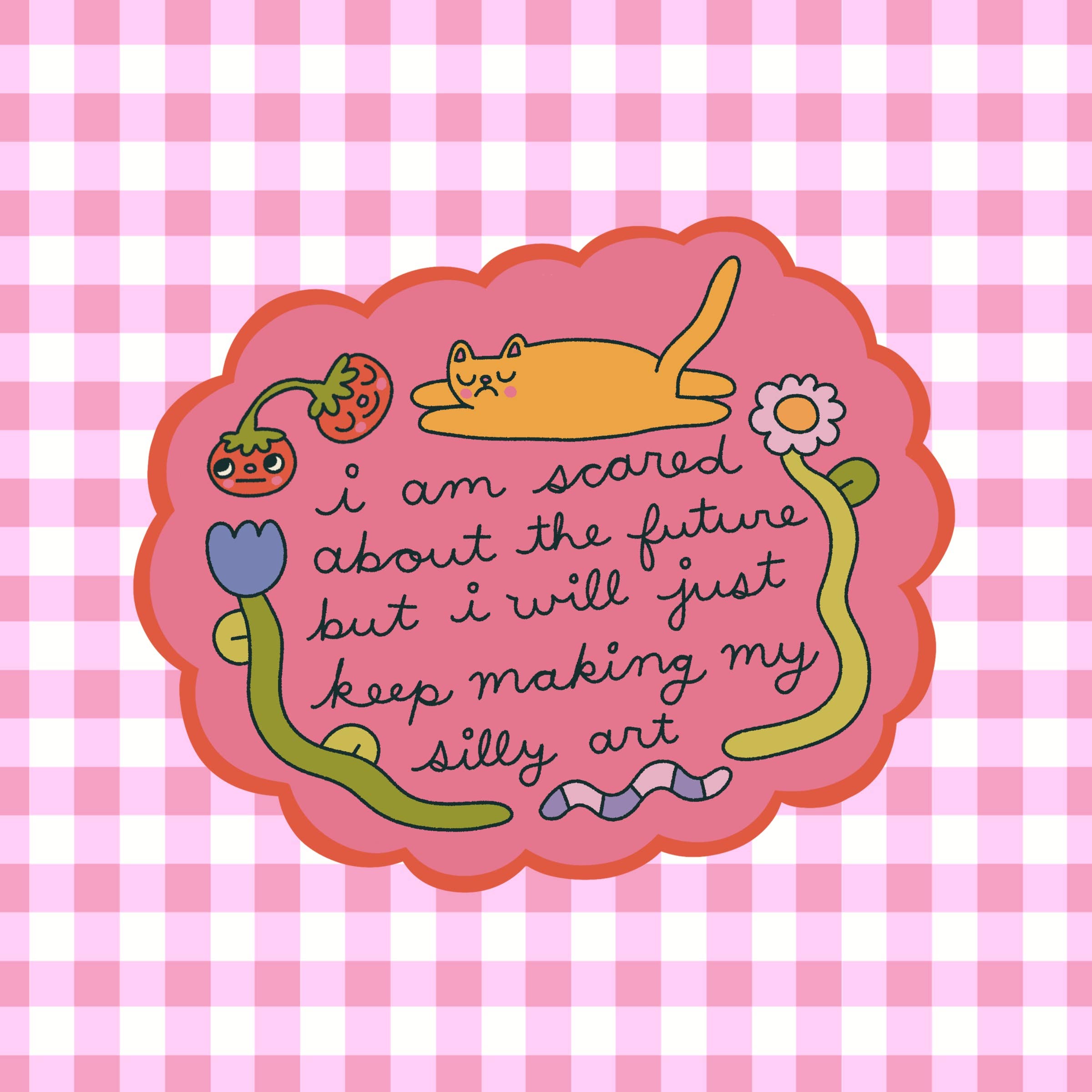 Découvrez votre nouveau trait de personnalité préféré : l'énergie de chat adorablement déjantée. L'autocollant "Comment être mignon et diabolique en même temps" met en scène un chat noir espiègle portant des lunettes en forme de fleur, entièrement absorbé par sa lecture pas si innocente. Imprimé sur du vinyle pailleté de qualité supérieure, cet autocollant de 3 pouces apporte autant de douceur que de malice à tout ce qu'il touche. Collez-le sur votre ordinateur portable, journal, bouteille d'eau, console de jeu, ou même votre livre de sorts pour afficher votre double nature au monde entier. Imperméable, résistant aux intempéries et suffisamment durable pour survivre à votre ère de méchant, cet autocollant résiste aux rayures, à la pluie, au soleil et au chaos quotidien. La finition pailletée ajoute juste ce qu'il faut d'éclat—comme de l'herbe à chat pour quiconque aime l'esthétique de la malice. Conçu par NatterDoodle pour les secrètement chaotiques, les confortablement dramatiques, et tous les mignons qui complotent leur domination du monde avec le sourire. Détails : • Taille d'environ 3 pouces • Vinyle pailleté de qualité supérieure • Résistant aux intempéries + imperméable • Stratifié résistant aux rayures • Conçu par NatterDoodle Veuillez noter : Accessoires non inclus. Mais ils sont vraiment mignons, n'est-ce pas ?
