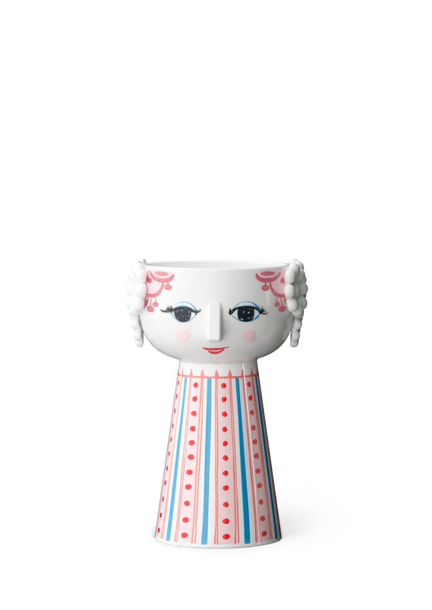 Eva présente une tête large et un bougeoir en forme de cône en céramique émaillée brillante avec un décalcomanie coloré. Ces adorables bougeoirs de 9,4 cm de hauteur peuvent contenir à la fois une bougie ou une bougie chauffe-plat. Fabriqués à partir des meilleurs matériaux, l'artisanat et la qualité se démarquent, faisant de ces céramiques le cadeau idéal pour les anniversaires, la fête des mères, les mariages et bien d'autres occasions spéciales. Associez-les à d'autres produits Eva pour créer un coffret cadeau unique ! Avec son sourire joyeux, ses joues rougissantes et ses décorations colorées, Eva incarne l'essence de Bjørn Wiinblad en tant que personne et artiste. Joyeuse et rêveuse, elle apporte vie et personnalité à l'intérieur avec son expression poétique et ses couleurs vibrantes. Rendez chaque saison mémorable, de l'hiver au printemps. Que vous offriez à quelqu'un de spécial un cadeau pour la Saint-Valentin entre amies ou que vous serviez un festin pour la Saint-Patrick, nos produits artisanaux rendent chaque moment lumineux !