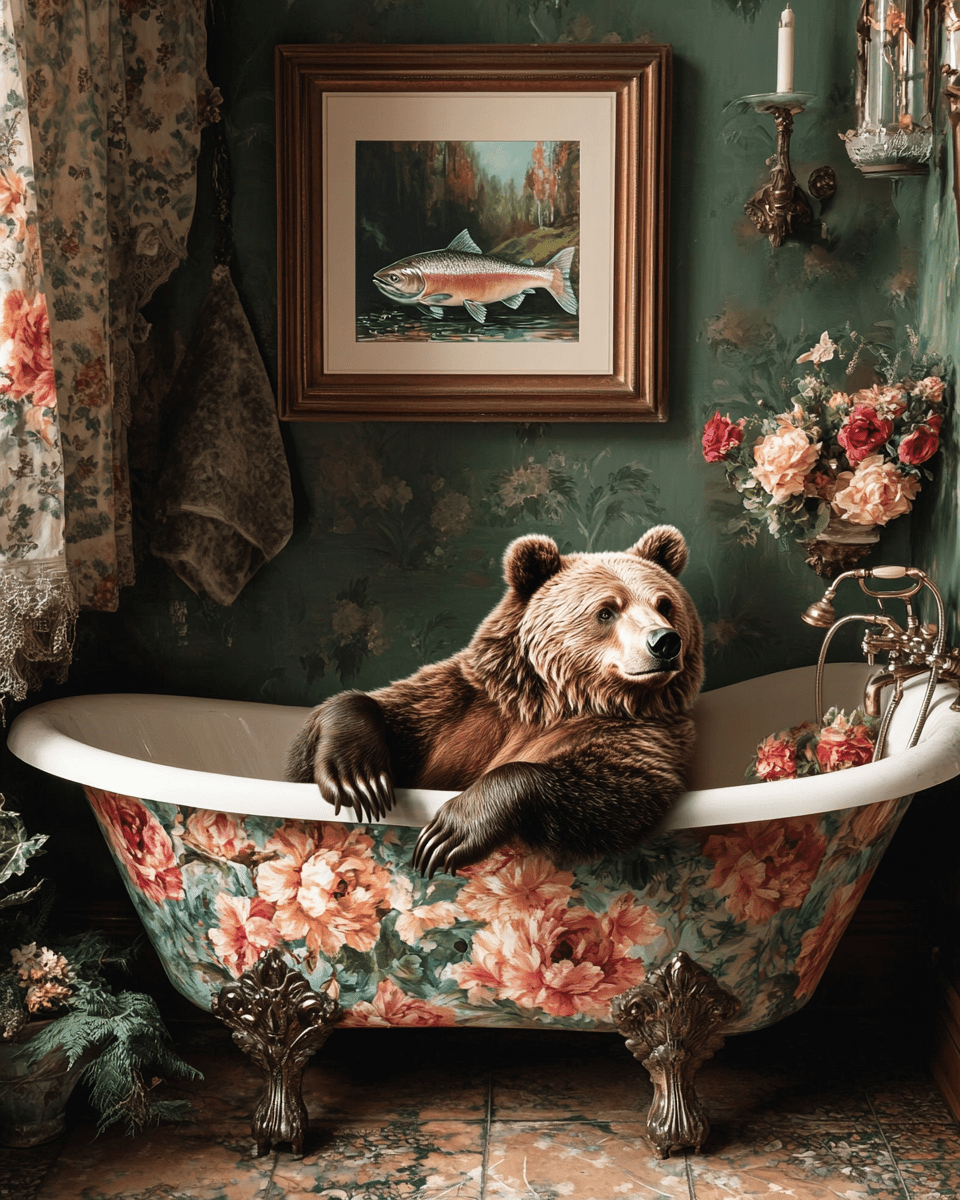 Un ours attrape du saumon - Photographie animalière - Encadré en bois en vente B2B