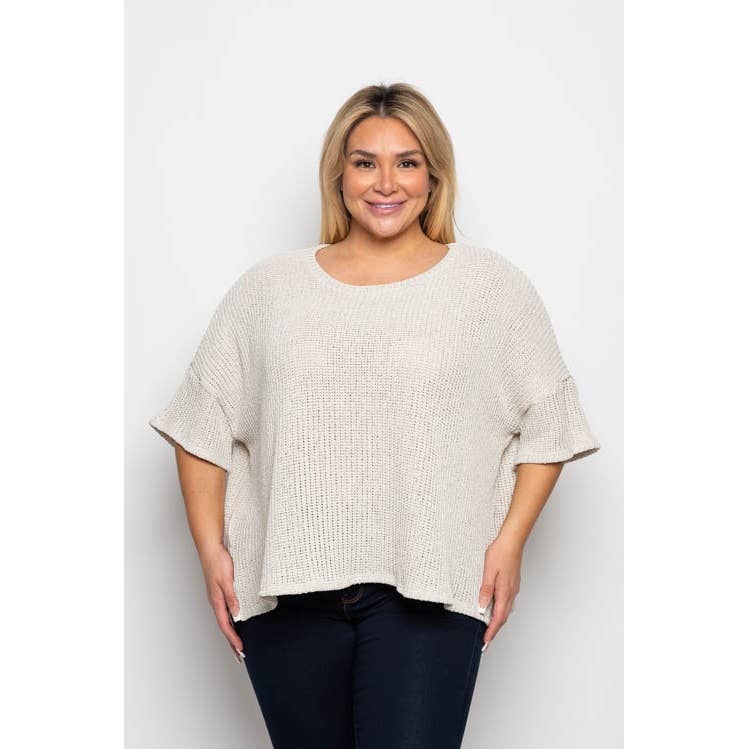 Haut à manches 3/4 à texture flammée à manches Dolman, grande taille, T813-PL en vente B2B