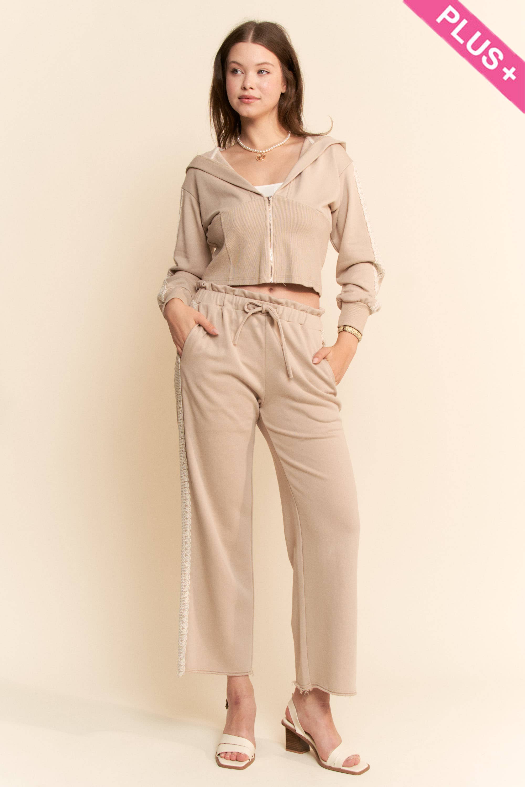 ENSEMBLE DE PANTALONS À CEINTURE ÉLASTIQUE AVEC COUTURES EXTÉRIEURES À BORDS ARRONDIS