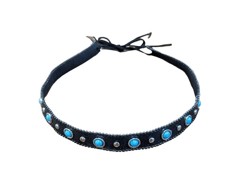 Ajoutez une touche occidentale à votre chapeau préféré avec ce bandeau concho en forme de croix turquoise. Ce bandeau est orné d'une combinaison de conchos argentés et de croix turquoises, avec des détails complexes qui ajoutent de la texture et de la dimension au design. Les pierres turquoises ajoutent une touche de couleur et une touche de style sud-ouest au bracelet. Le bracelet est ajustable et s'adapte à la plupart des chapeaux, ce qui permet d'ajouter facilement une touche d'élégance à votre couvre-chef préféré. Que vous alliez à un rodéo, à un concert de musique country ou que vous souhaitiez simplement montrer votre style occidental, ce bandeau concho en forme de croix turquoise est l'accessoire parfait. C'est également un excellent cadeau pour tous ceux qui aiment la mode occidentale ou qui souhaitent ajouter une touche de style sud-ouest à leur garde-robe. Conforme au plomb et au nickel. Réservé aux adultes. BONNET UNIQUEMENT, chapeau non inclus.