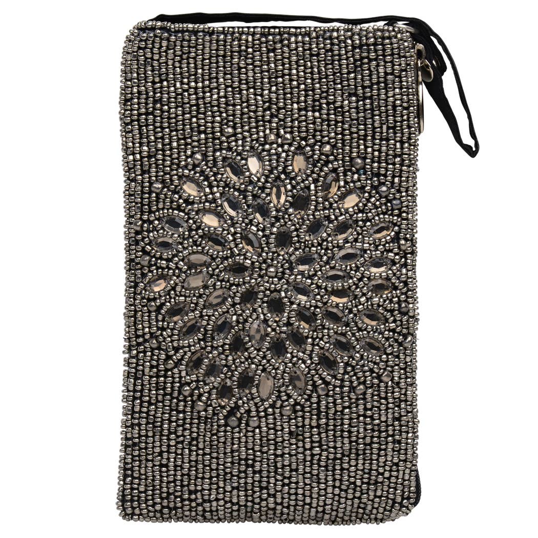 Sac bandoulière pour téléphone à motif soleil perlé avec fleurs