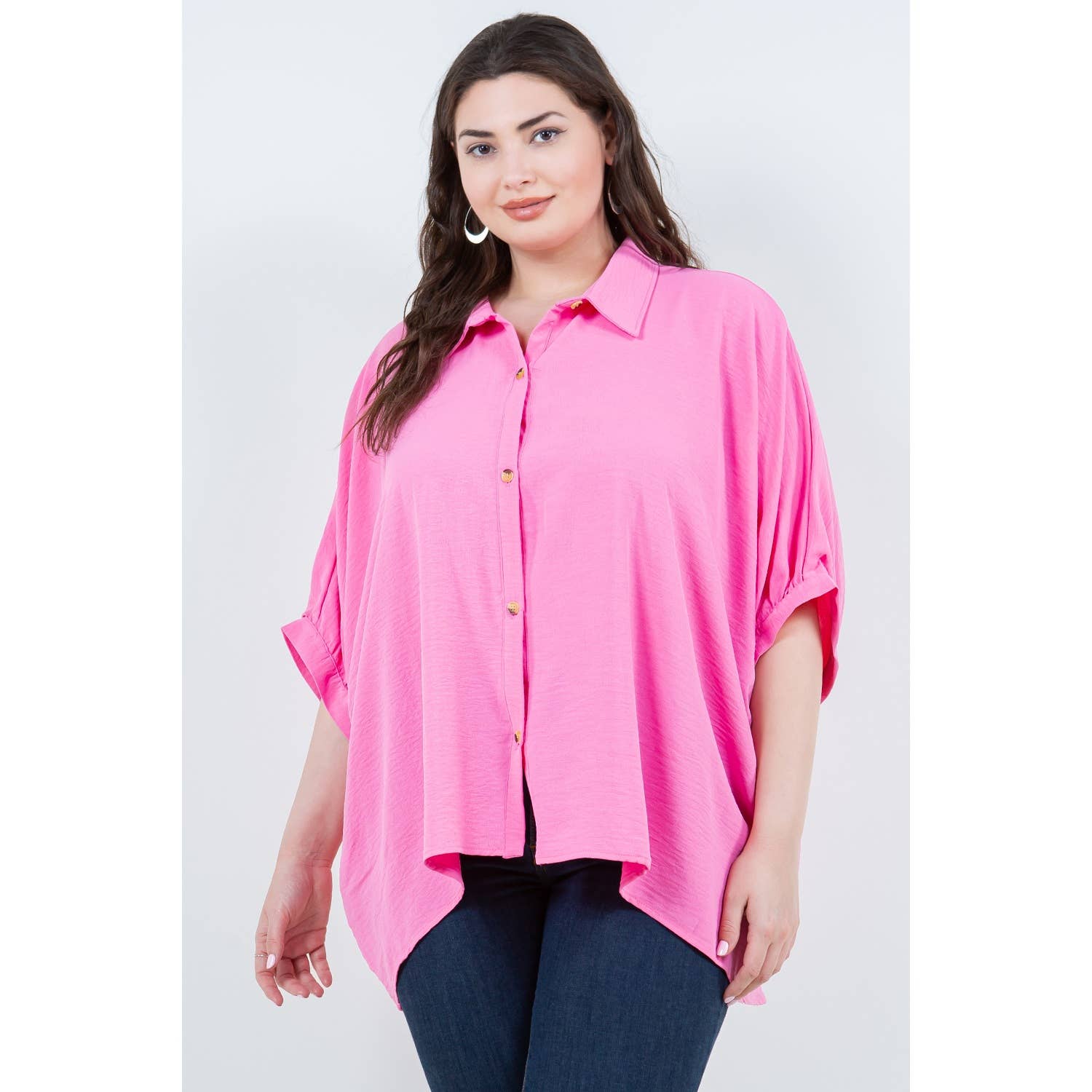 Chemise sans manches oversize fuchsia à boutons avec fentes en vente B2B
