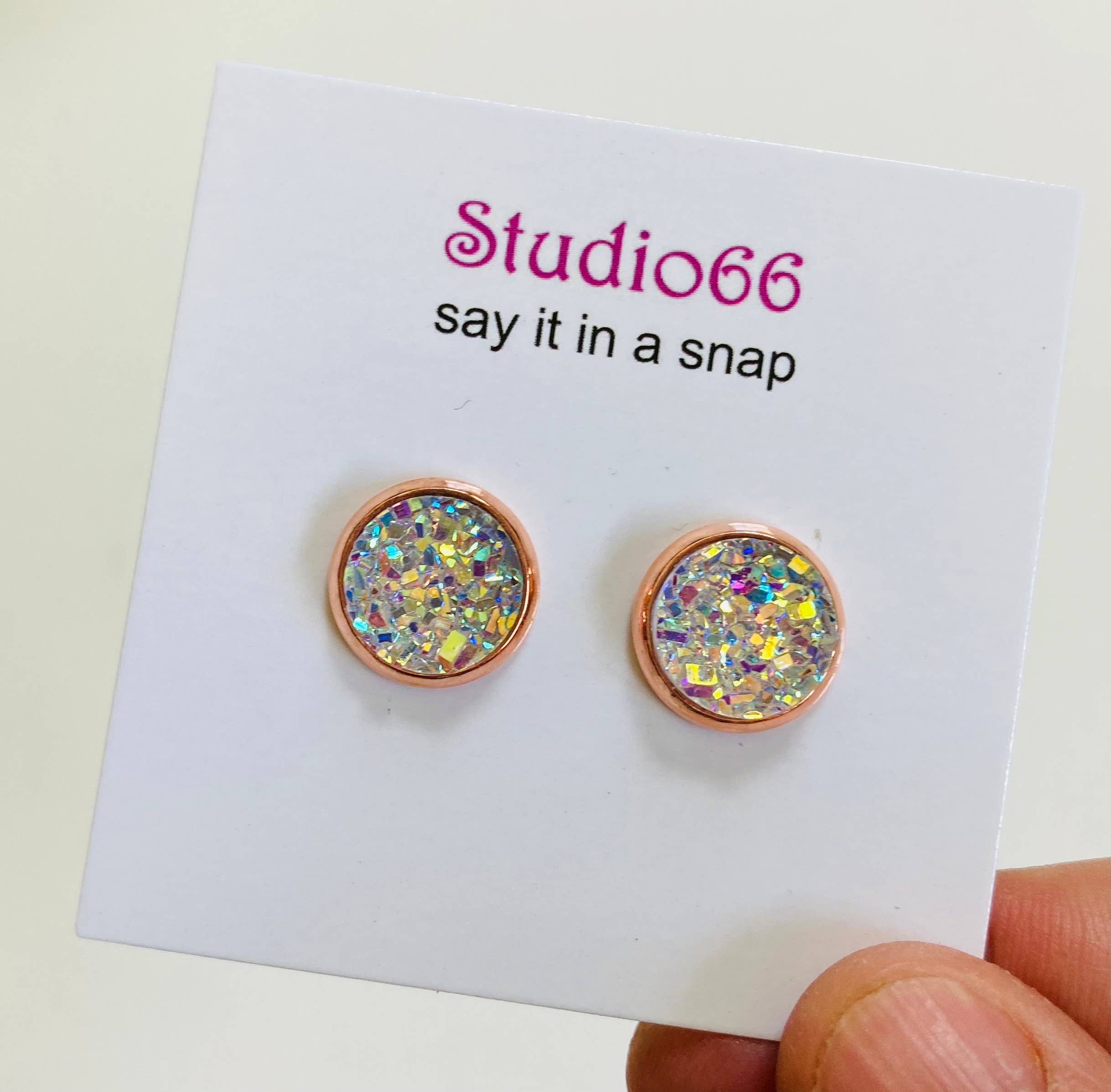 Clous d'oreilles Druzy sur tiges de boucles d'oreilles sans plomb et sans nickel. Ces magnifiques clous d'oreilles imitation druzy de 8 mm, 10 mm et 12 mm sont sertis dans votre choix de tige en métal argent, or, or rose, noir ou bronze. Il ne s'agit pas de véritables pierres, mais elles sont magnifiques avec un éclat subtil. Ils sont légers, très confortables et parfaits pour un usage quotidien. La couleur de la monture est le poteau métallique à l'intérieur duquel se trouve la pierre. Cette annonce ne concerne qu'une paire de boucles d'oreilles.