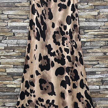 Mini jupe en satin à imprimé vache avec fente fabriquée aux États-Unis. Disponible dans d'autres couleurs. Composition du tissu : 97 % polyester, 3 % élasthanne. *TAILLE ET AJUSTEMENT* Raquelle porte un petit Hauteur : 5'9 Taille : 26 Poitrine : 34C