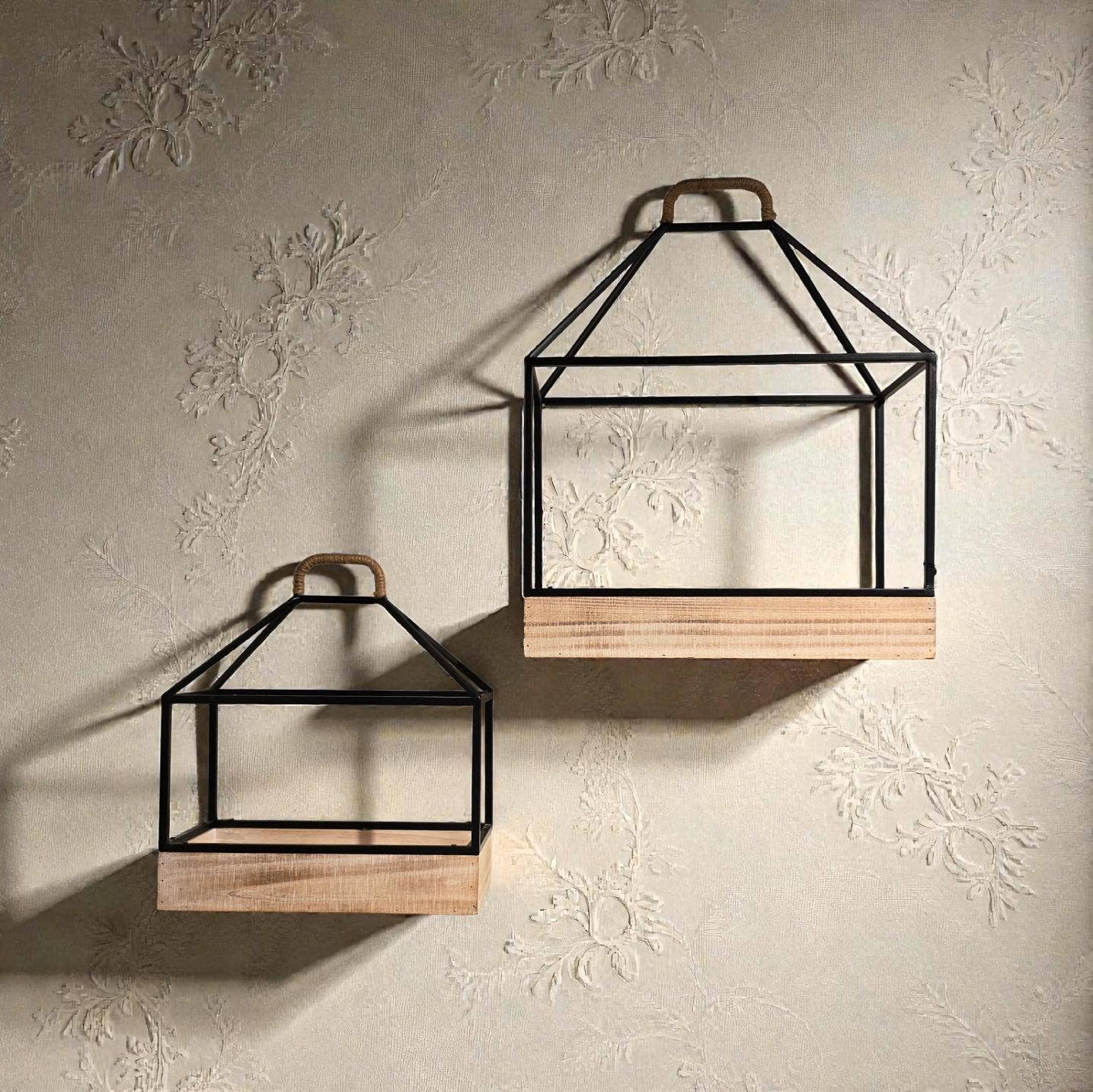 Le lot de lanternes ouvertes en métal doré vieilli apportera élégance et originalité à vos décors de style ferme et botanique. Ces lanternes métalliques hautes possèdent un design aéré, avec deux faces entièrement ouvertes et les autres côtés fermés par une simple croix en fil de métal. Le cadre métallique a un motif bambou et est recouvert d'une finition dorée légèrement vieillie. Chaque lanterne est équipée d'une anse en métal pour la transporter ou la suspendre à un crochet de type berger. La base des lanternes est une plate-forme en bois carrée assurant une stabilité pour exposer plantes, fleurs, bougies et autres objets ! La plus petite mesure 14 cm de côté sur 44,5 cm de hauteur, la plus grande 16,5 cm de côté sur 50,8 cm de hauteur. Ajoutez une plante en pot dans une lanterne et un petit décor avec une boîte à thème végétal et des perles dans l'autre pour un bel agencement harmonieux.