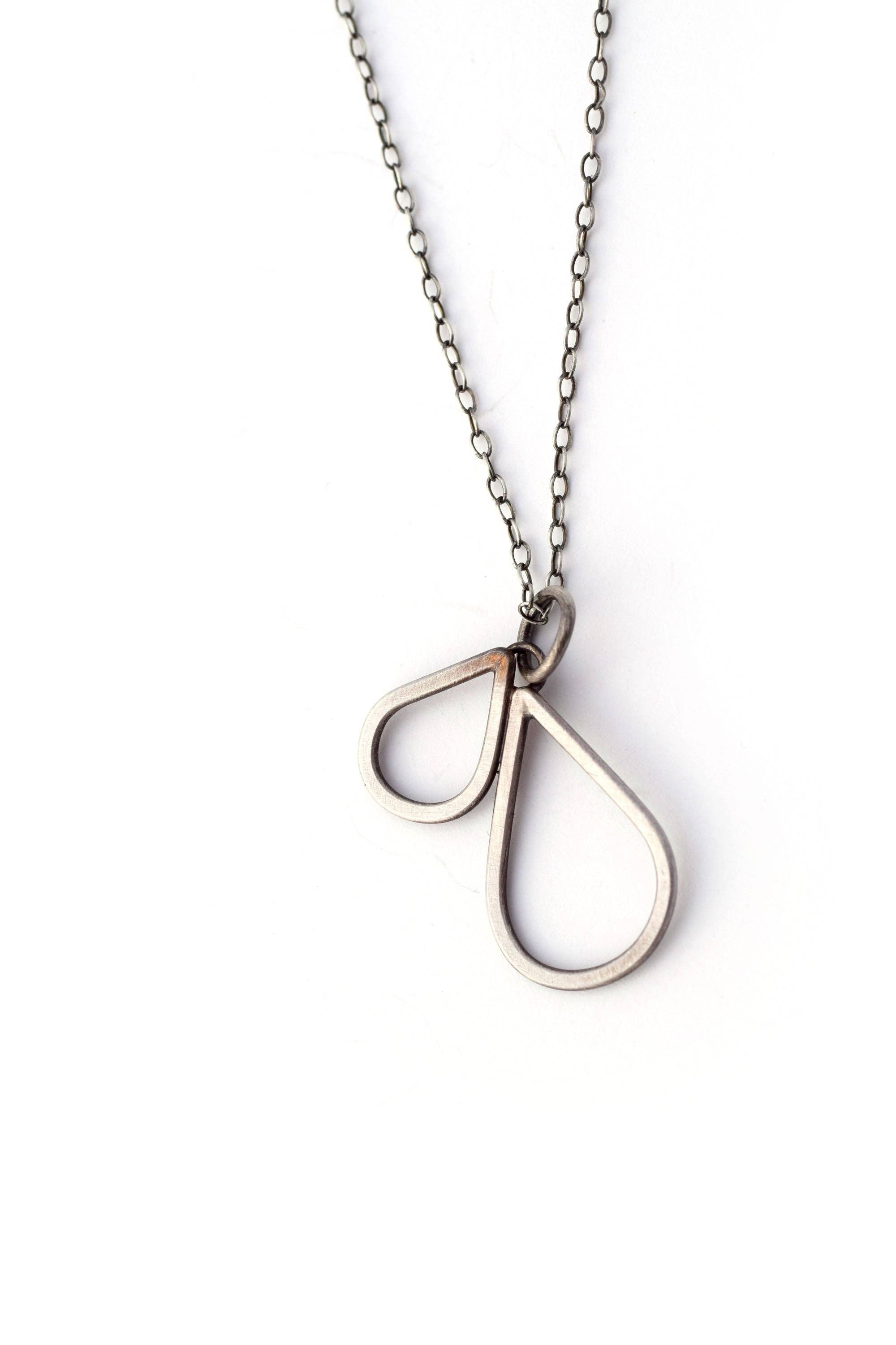 Ce collier est orné de deux pétales d'argent sterling martelé l'un niché dans l'autre sur une chaîne plus longue en argent sterling de 61 cm.