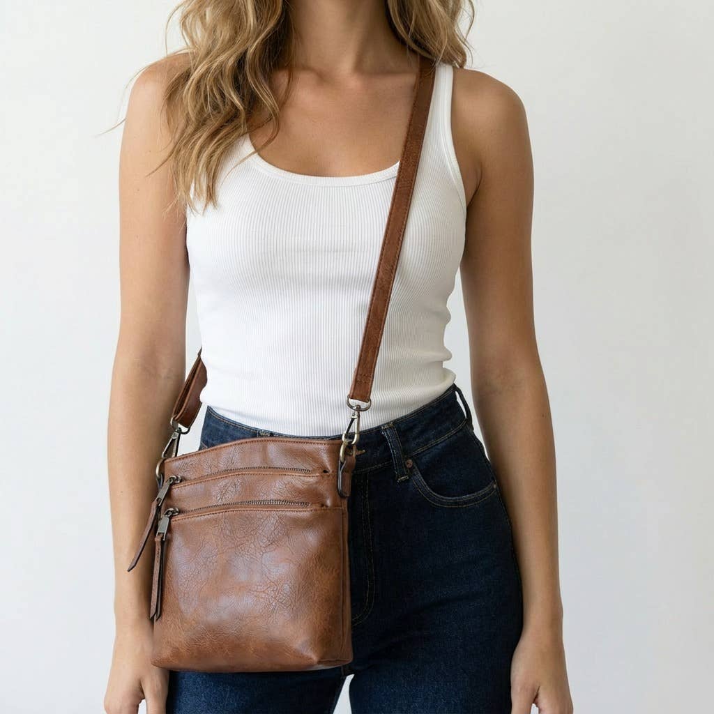 Ce petit gars est prêt à transporter tous vos essentiels : téléphone portable, portefeuille, etc. Disponible en 5 couleurs neutres, vous allez adorer ce sac en raison de sa simplicité et de sa structure pratique. Quelle que soit votre destination, ce sac vous aidera à transporter léger et efficace. Disponible dès maintenant pour la vente en gros et les boutiques ! Dimensions : 5,5 po L x 7 po H, longueur de sangle : 52 po L, longueur de chute : 24 po Matériaux : cuir Poches/compartiments : 1 poche extérieure Fermeture : Magnétique Pré-emballage : 2 pièces, même couleur