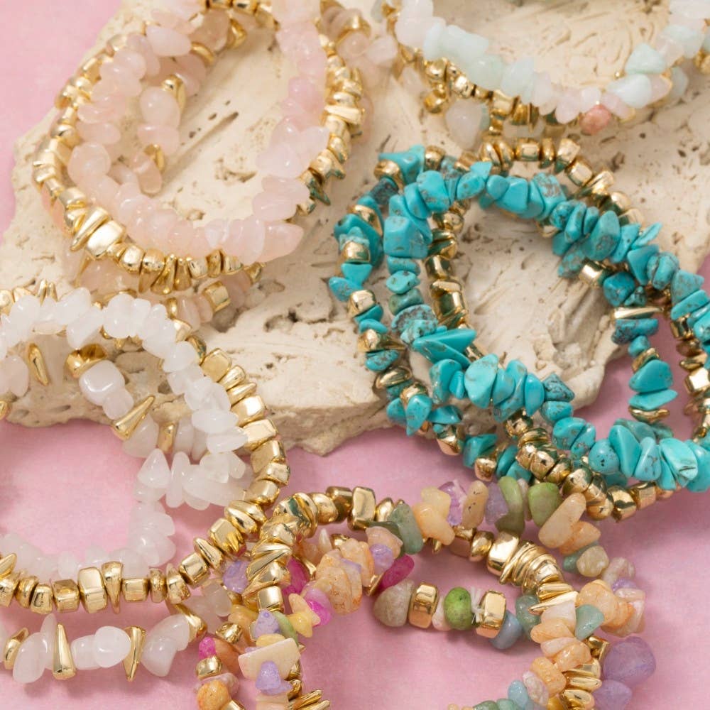 NOUVELLES COULEURS ! Mélangez et assortissez ces belles perles de verre tchèques, elles mesurent une délicate perle de 6 mm et une perle en laiton doré de 1,5" de long. Le cordon extensible de qualité professionnelle est super solide mais aussi doux, souple et très confortable à porter. Les détails : Perles de verre tchèques de 6mm Perles en laiton de 1,5 po sur l'ensemble en option de perles en laiton Cordon extensible solide et souple. Fabriqué dans notre studio Burlington VT