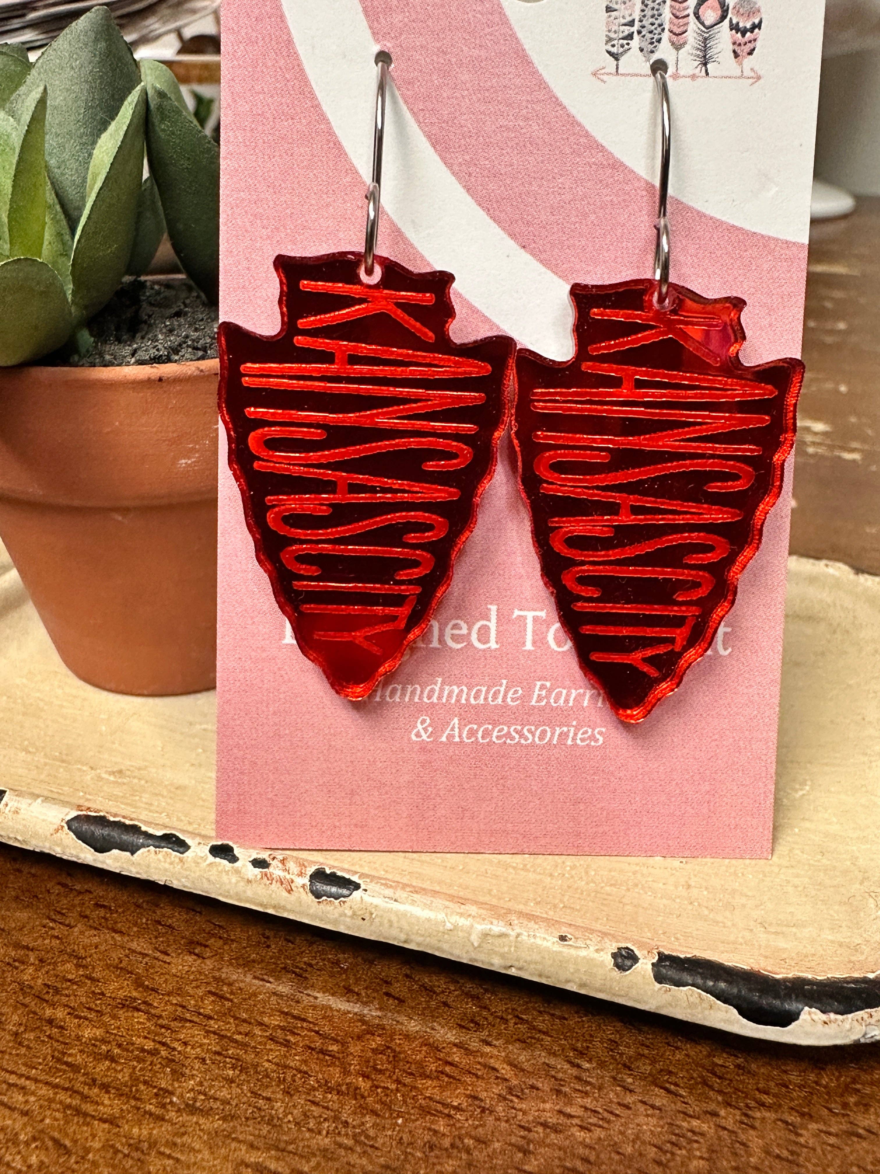 KC Football - Grandes boucles d'oreilles flèches en confettis rouges et dorés