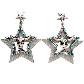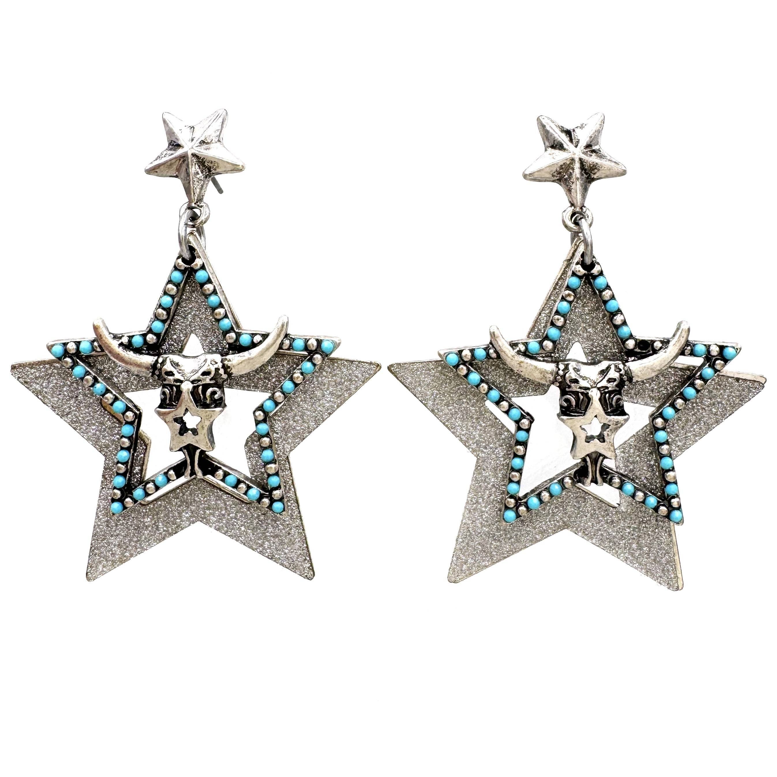 Boucles d'oreilles Western en strass • 2 pouces • pierre artisanale • retour par la poste • Matériau en alliage métallique • Assiette en argent antique • Sans nickel ni plomb Choisissez une étoile ou un cactus