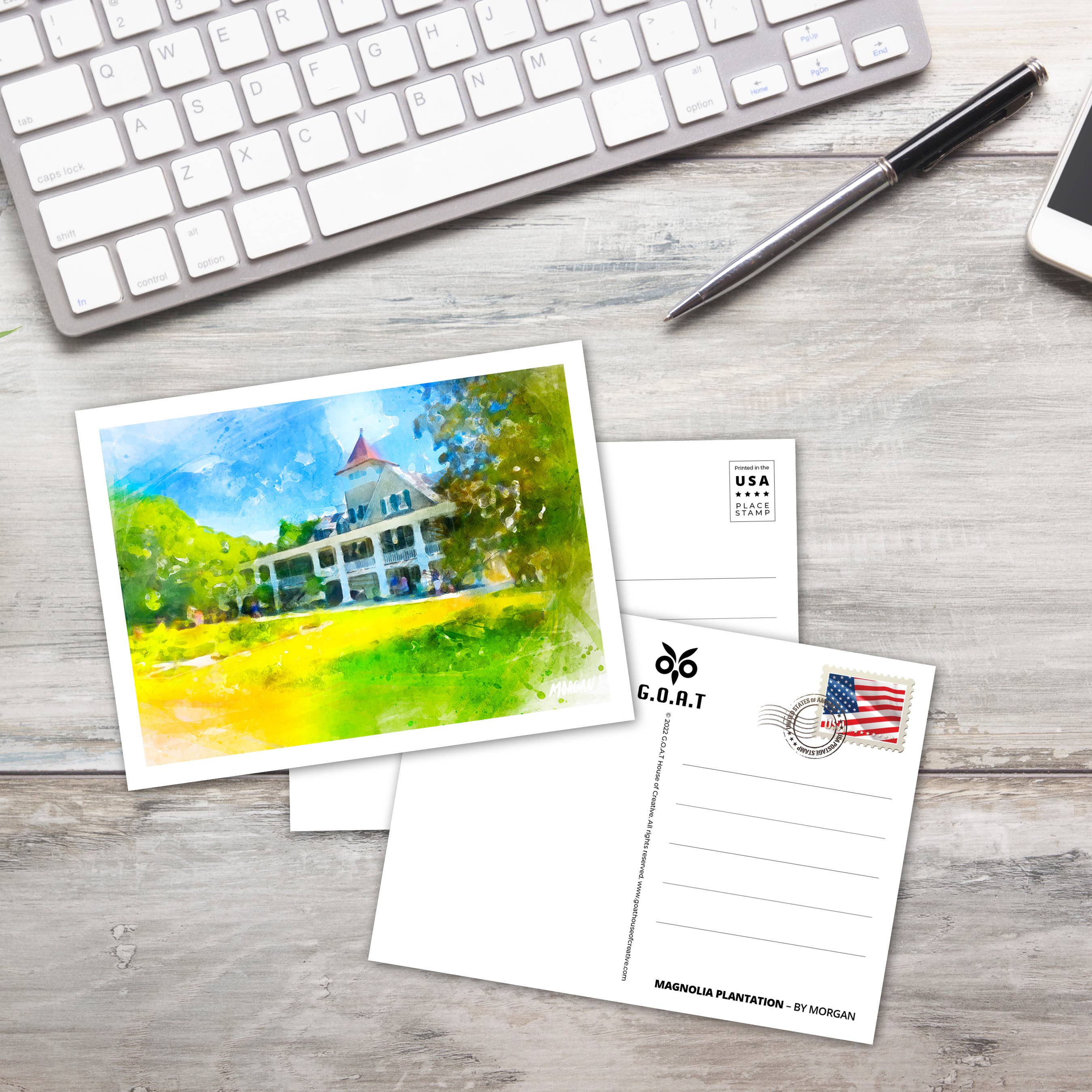 Élevez votre inventaire avec cette carte postale classique de 3,5" x 5,5" présentant une image de notre collection de Los Angeles intitulée Maison de Clark Gable, Brentwood, Californie. Elle capture une esthétique nostalgique et inspirée du vintage que les clients adorent. Parfaite pour ajouter une touche rétro et charmante à votre répertoire. • Taille : 3,5" × 5,5" • Disponible en quantités de gros de 20 • Fabriquée aux États-Unis avec des matériaux biodégradables, recyclés et recyclables Mots-clés de recherche : horizontal, paysage, lin, Highlands, film, star, maison, résidence, encart