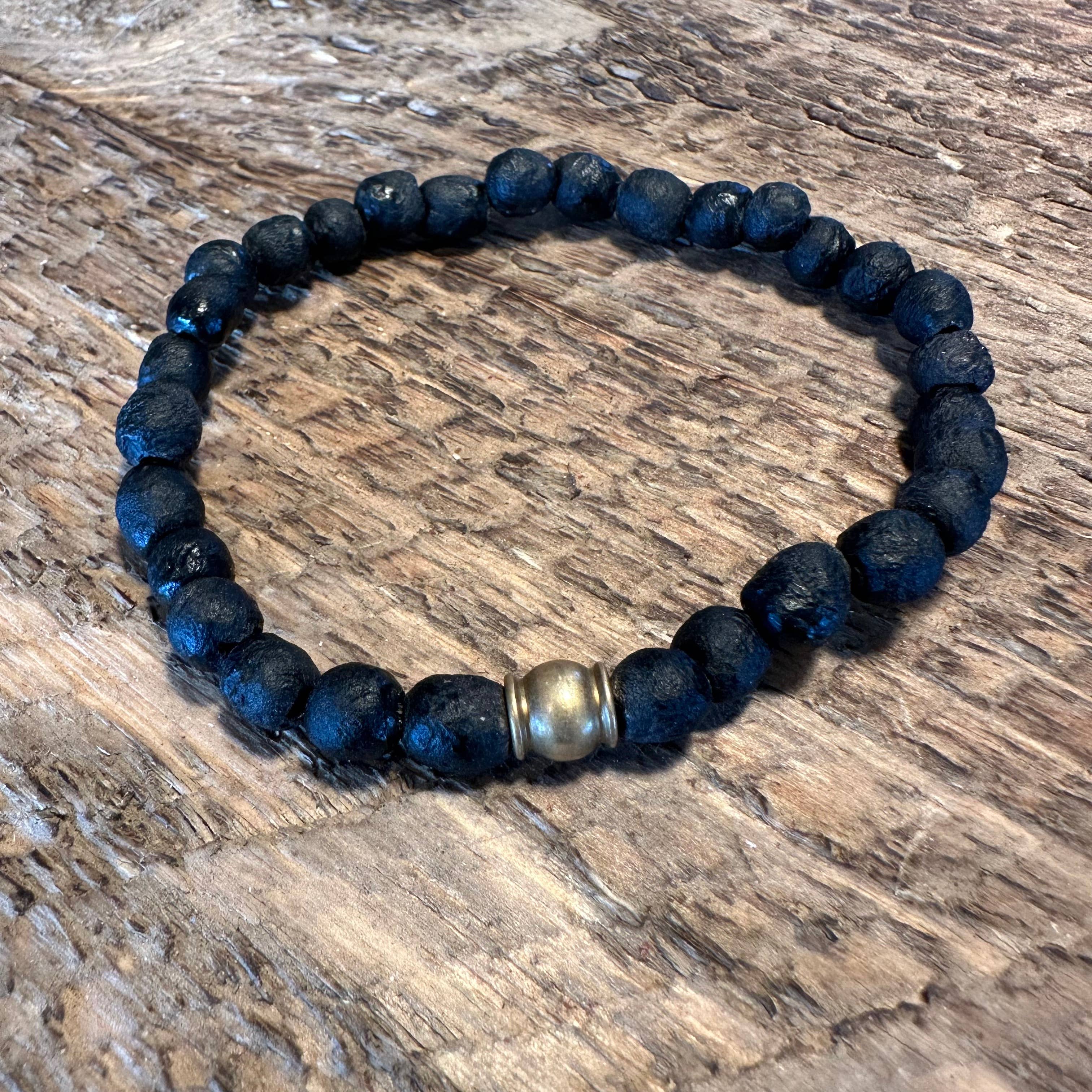 Cette pierre de pierre de lave volcanique et palissandre mesure environ 8 mm. Les choix de cordes sont Crystal String (Clear Stretch), Tressé élastique noir et élastique tressé blanc.