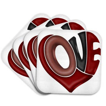 Dessous de verre Love - Cœur - Bords mixtes (3 argent, 3 or)